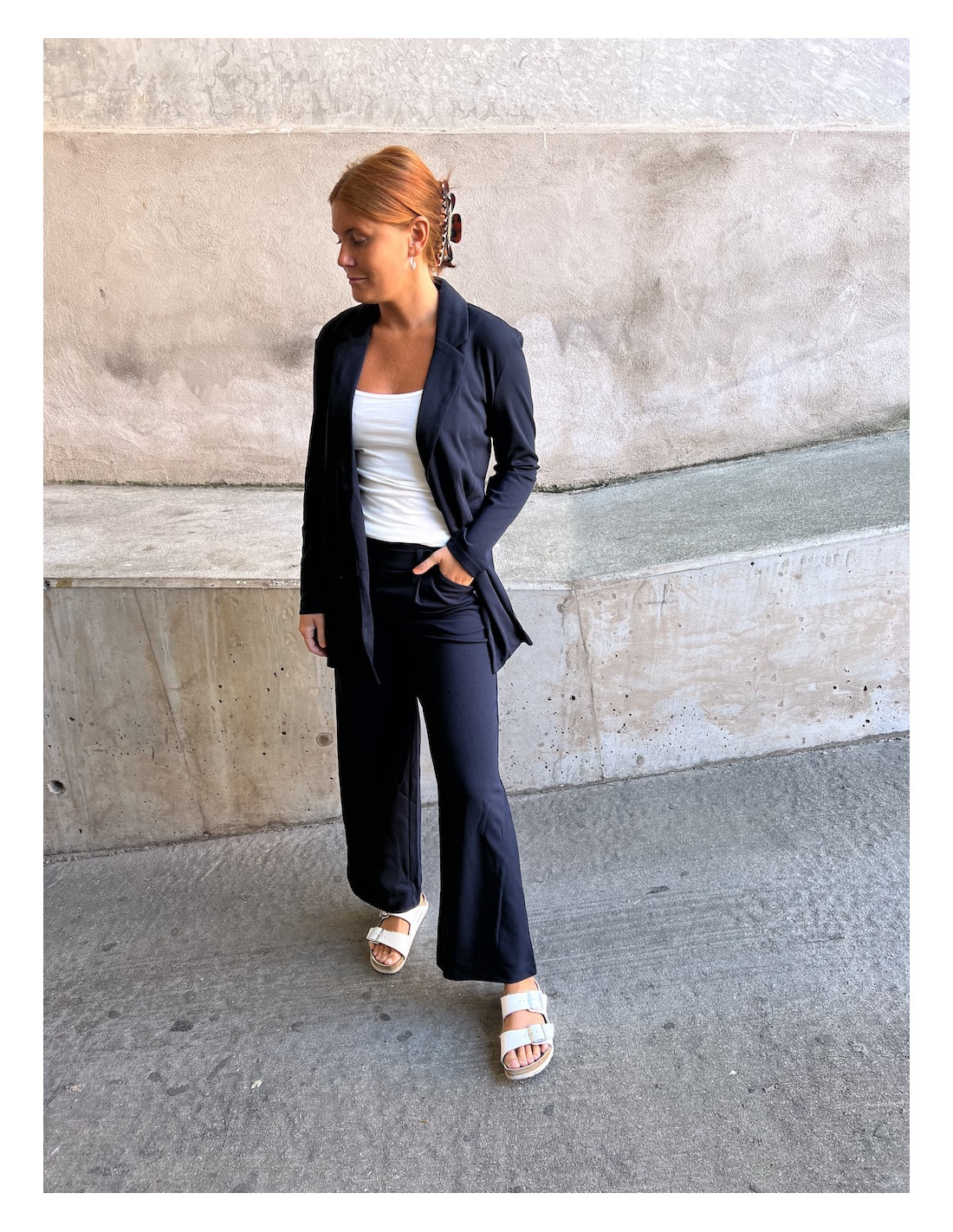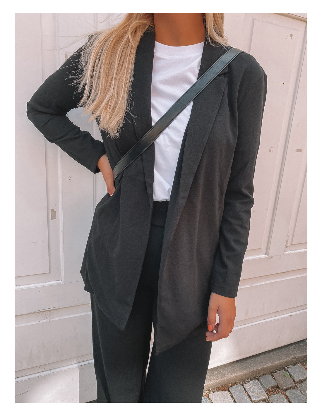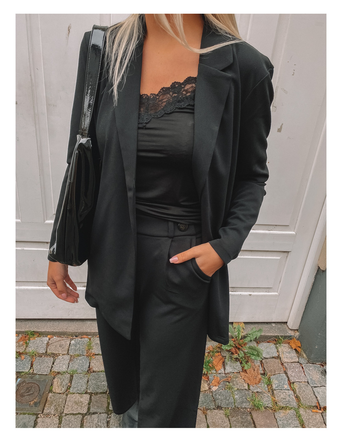 Stilren kavaj i mjukt smidigt material med stretch. Öppen framtill.