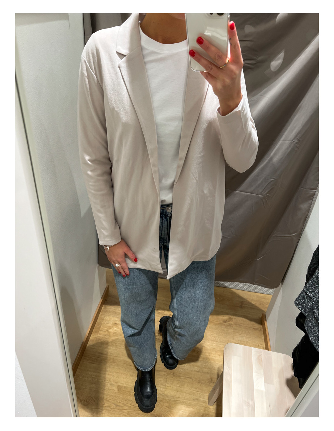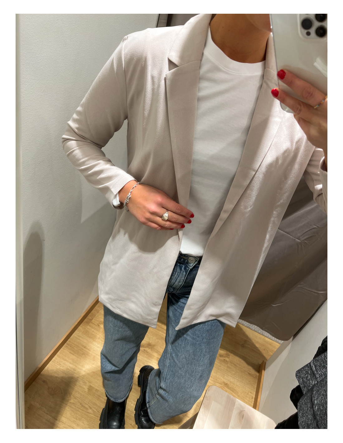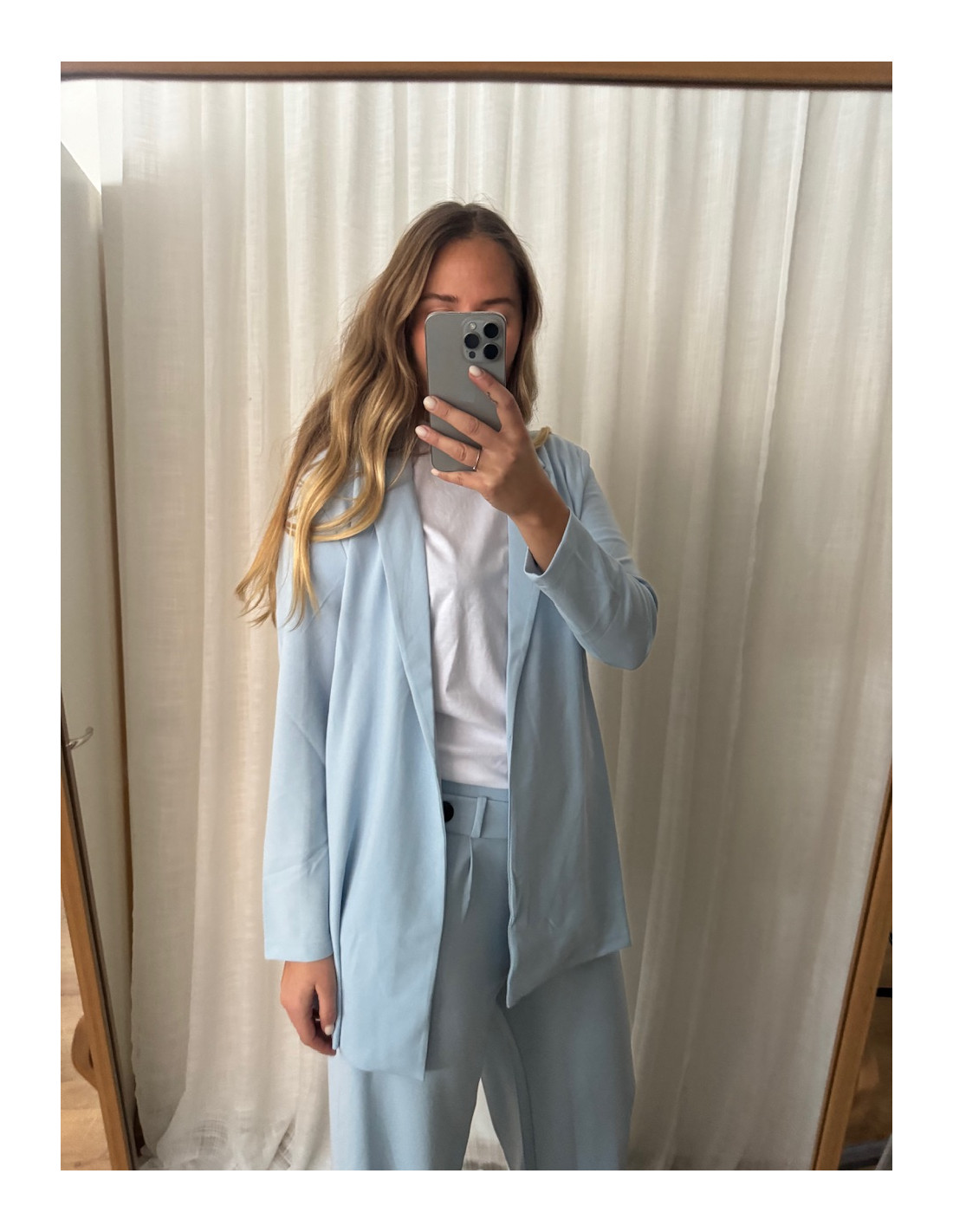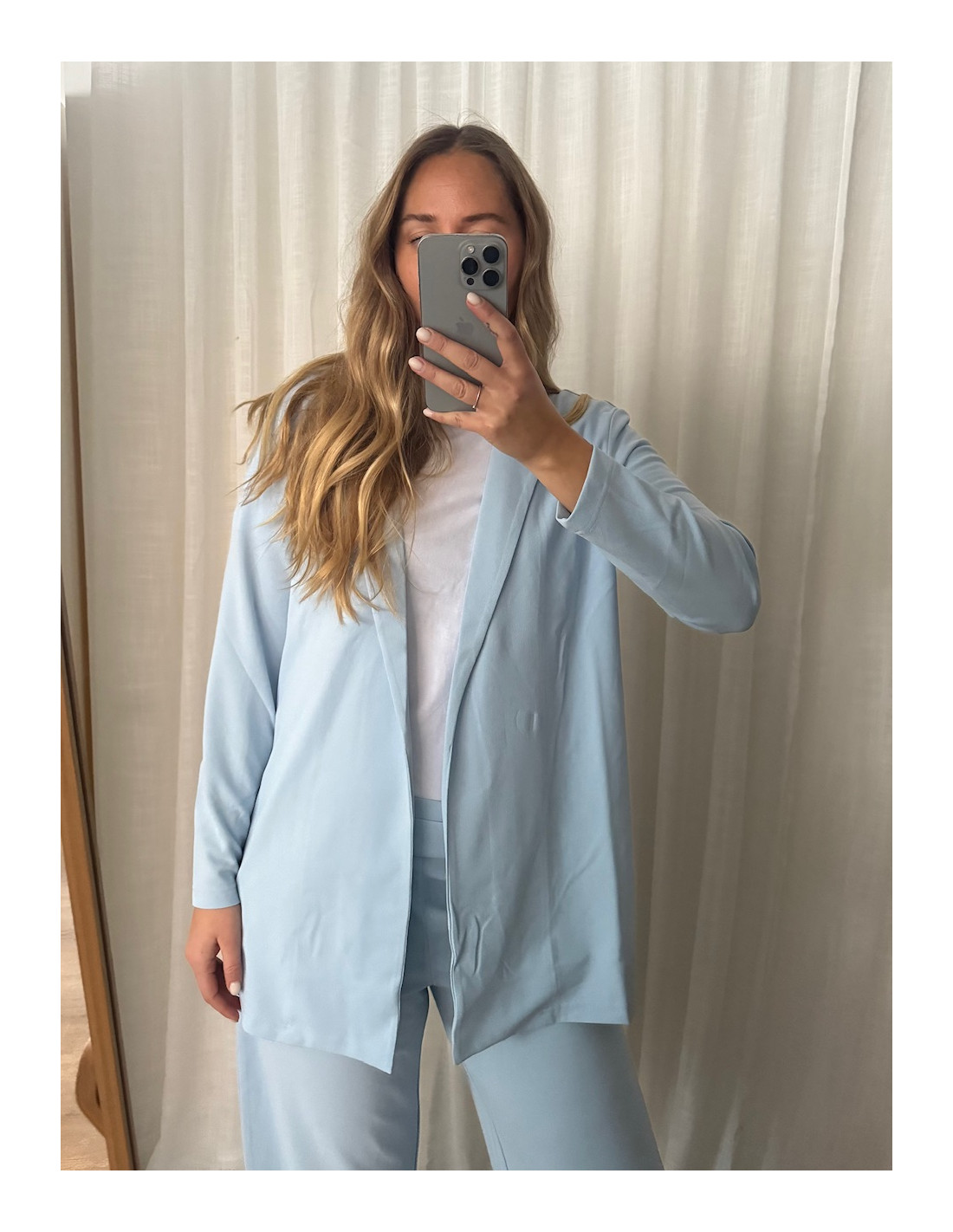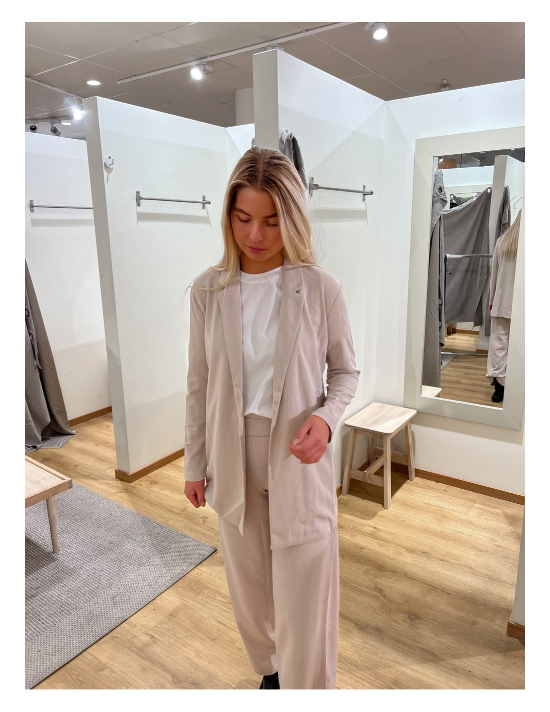Stilren kavaj i mjukt smidigt material med stretch. Öppen framtill.