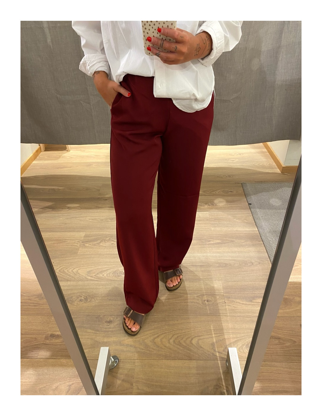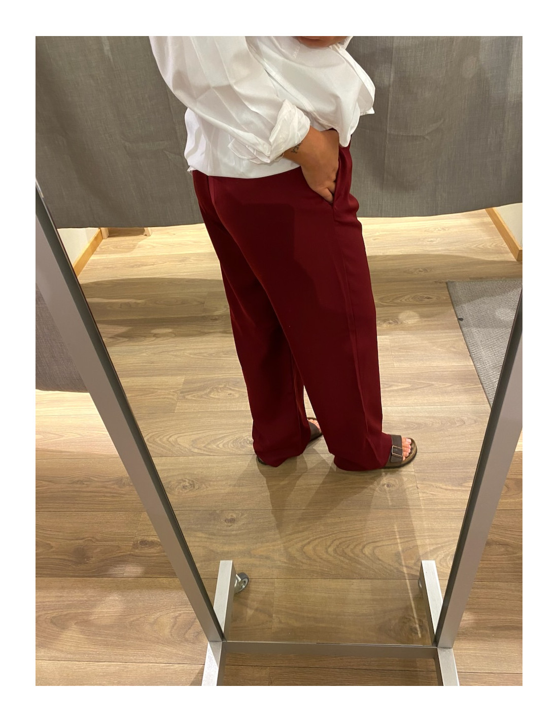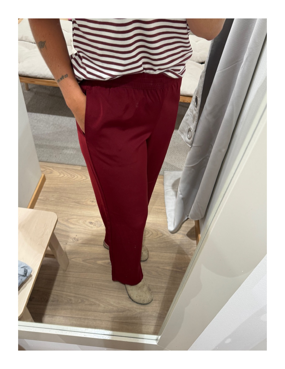 Snygg byxa med resår i midjan, men som ändå inger en dressad känsla. Den är högre i midjan och är rak nedtill. Fulllängd. Regular fit. Så snygg till partyn, men även när man vill vara dressad till vardags.