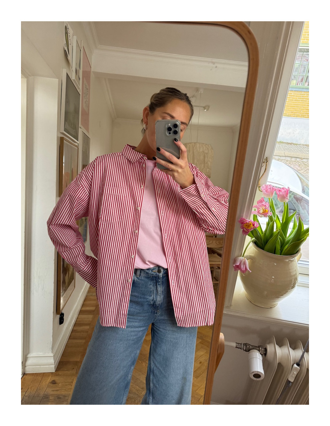 Normal till oversized fit. Vill man ha den ännu mera oversized så kan man välja en större storlek.