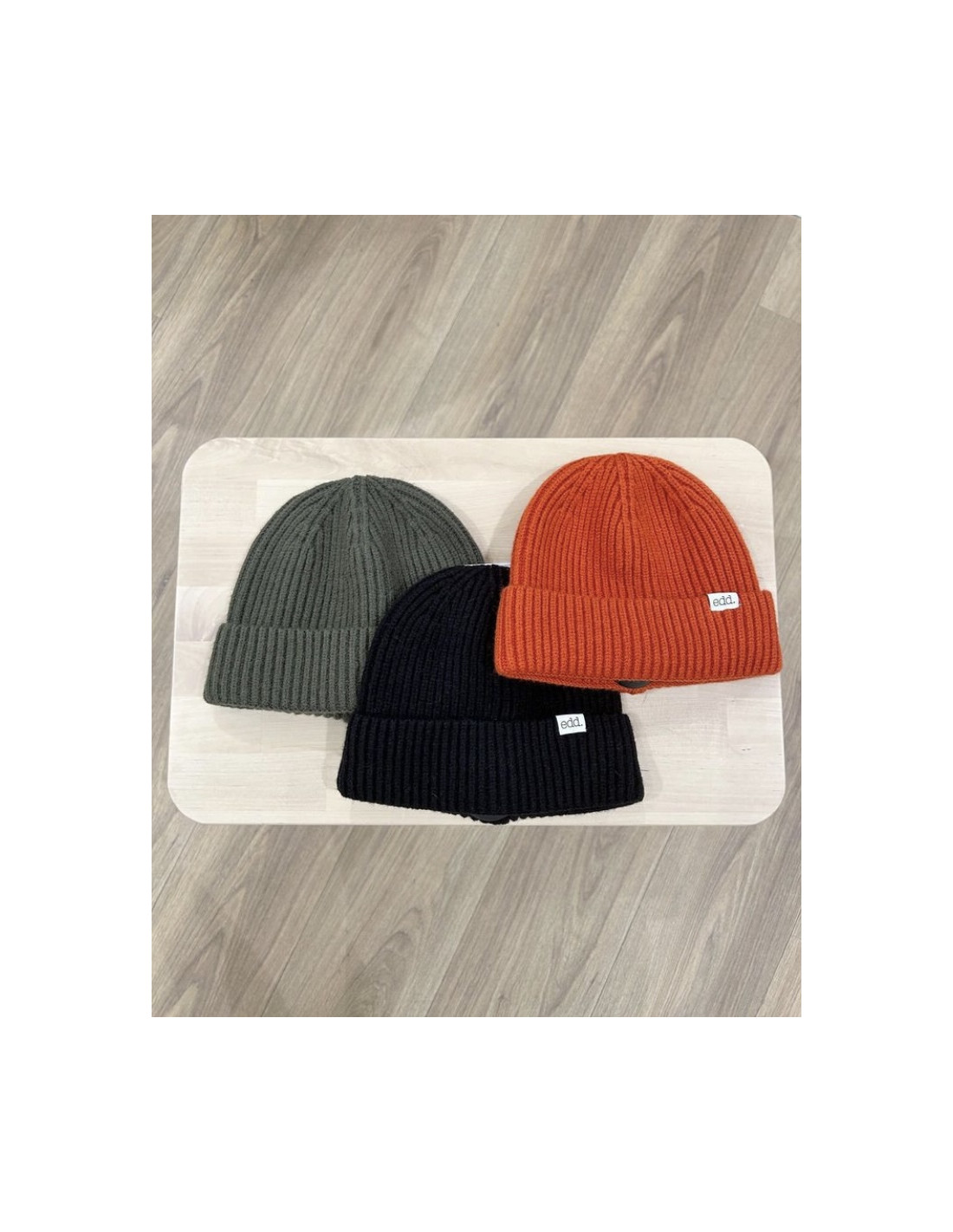 Ribbad beanie som slutar ovanför öronen. Riktigt cool på.