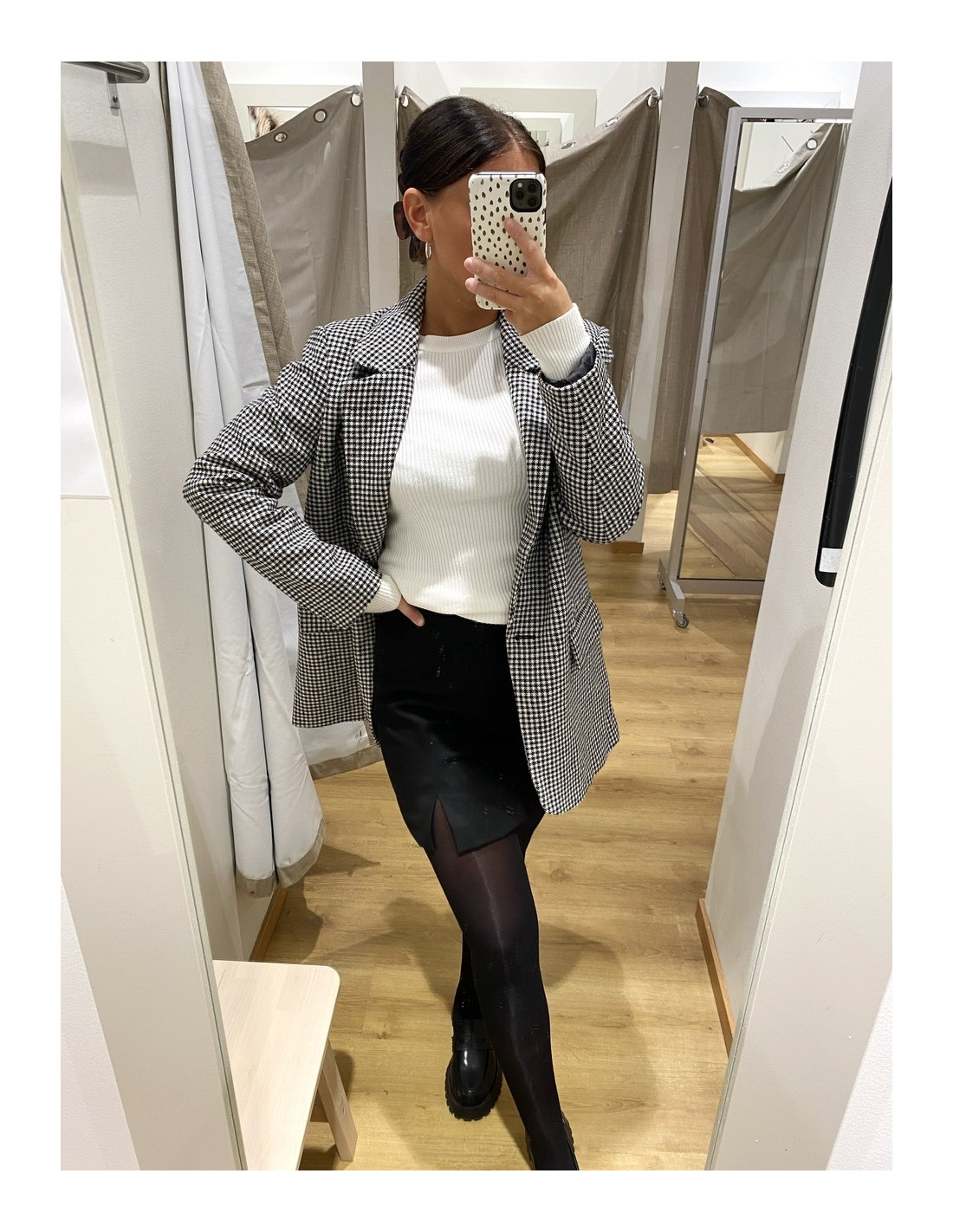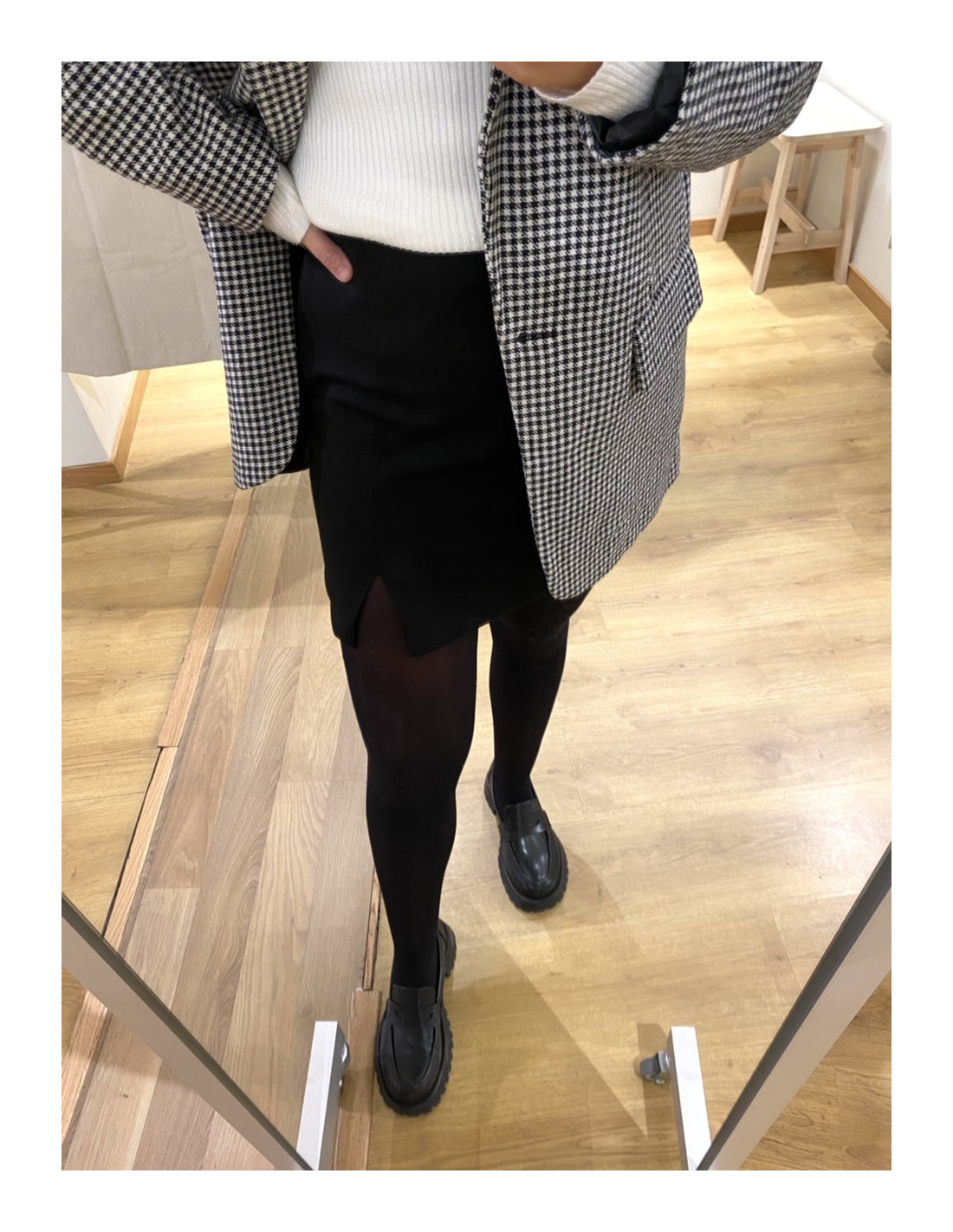Kortare kjol med dragkedja vid sidan och liten slits på ena sidan. Stretchig men normal i storlek. Amanda bär S.