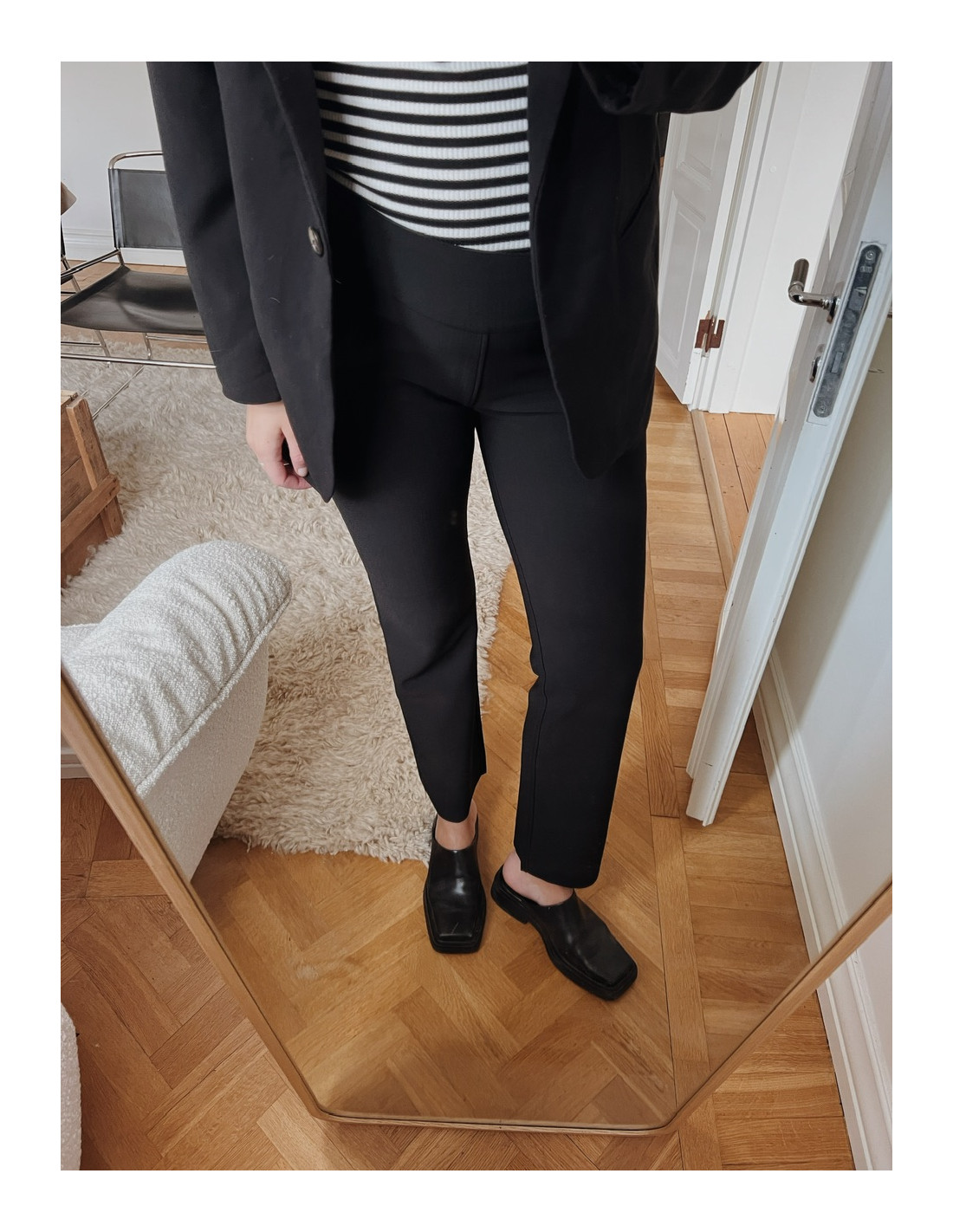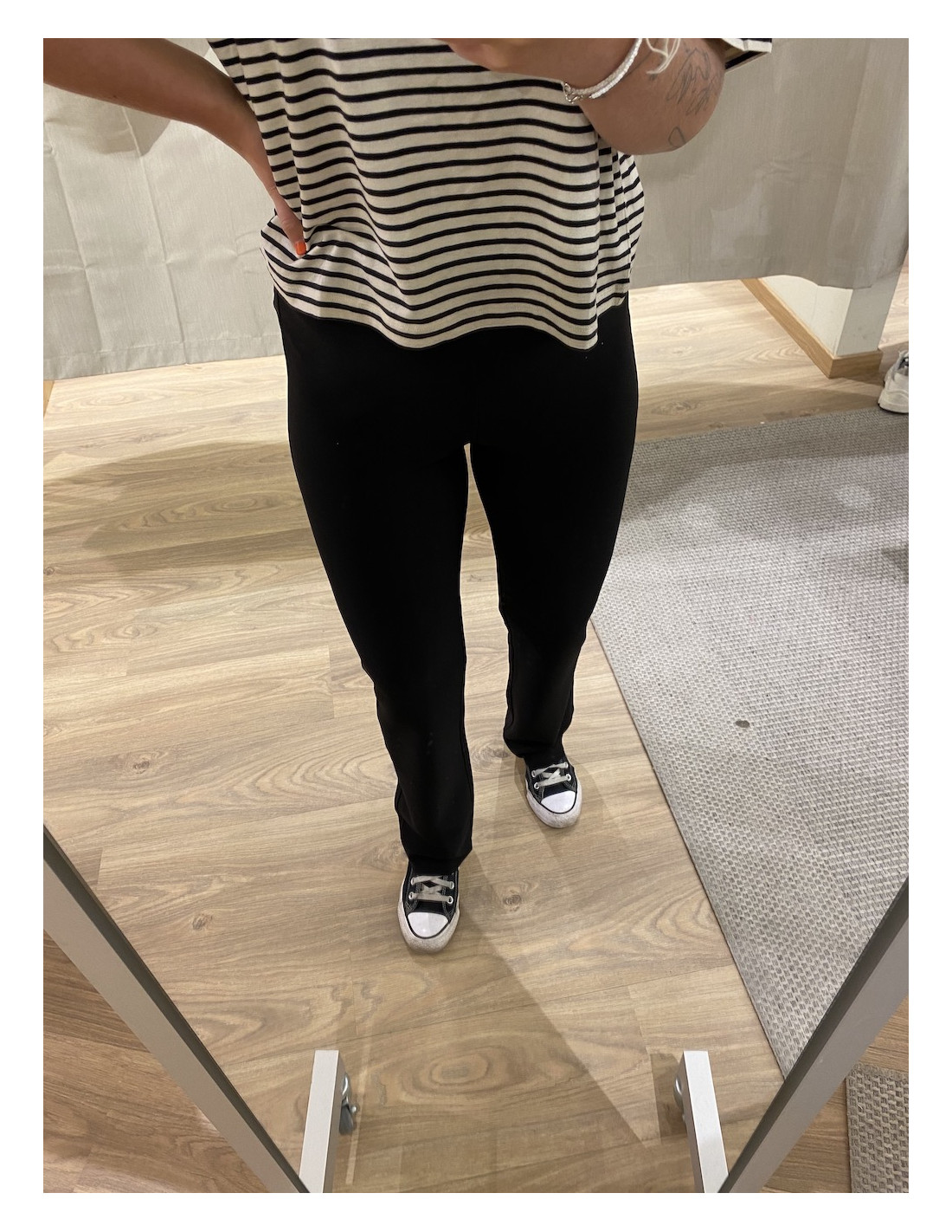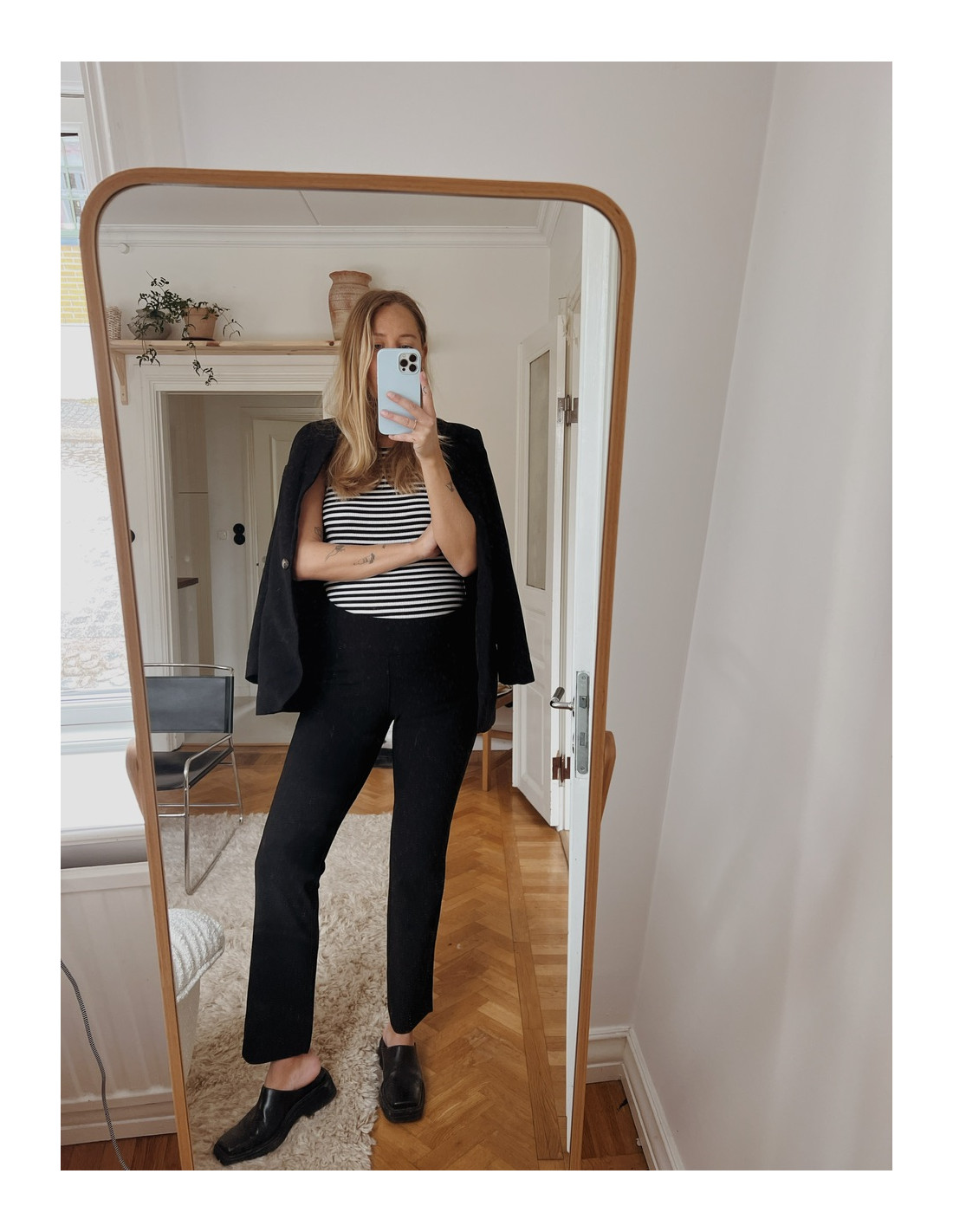 Kajsa bär storlek L/32 och är 179 cm lång. (Gravid på bilderna)