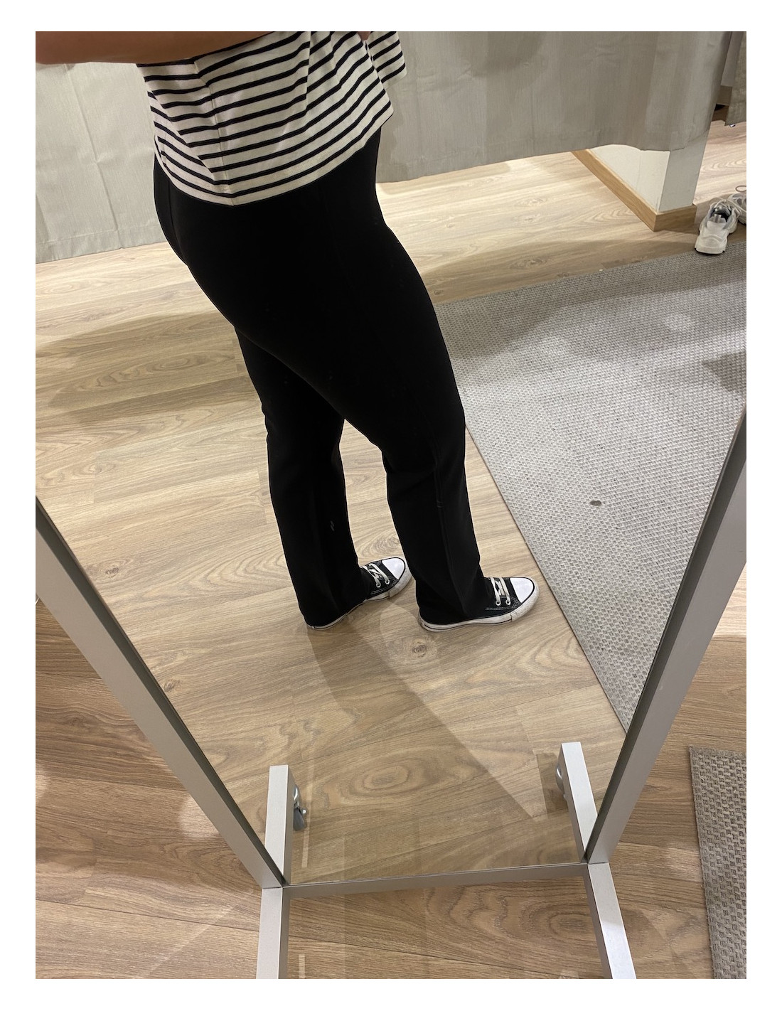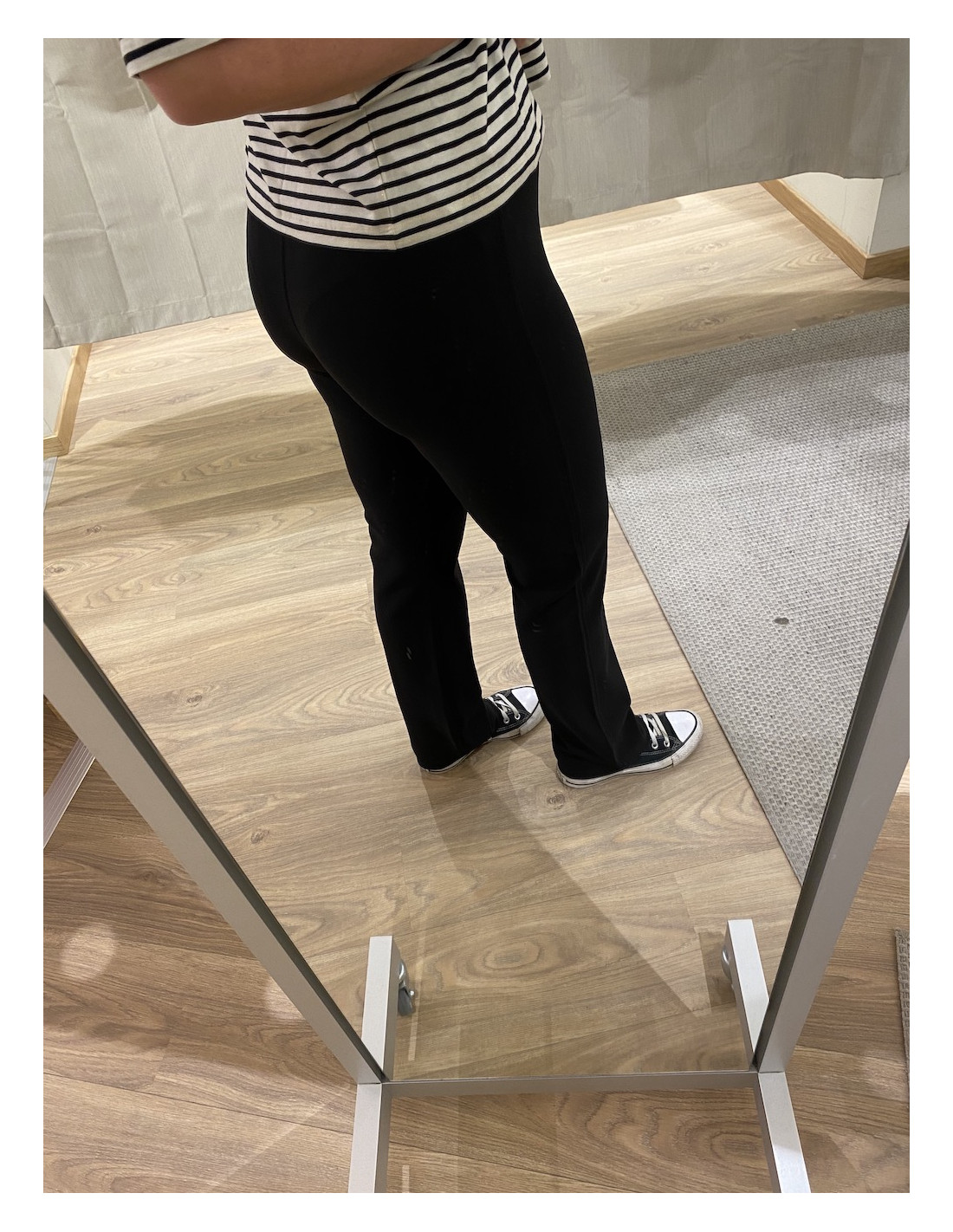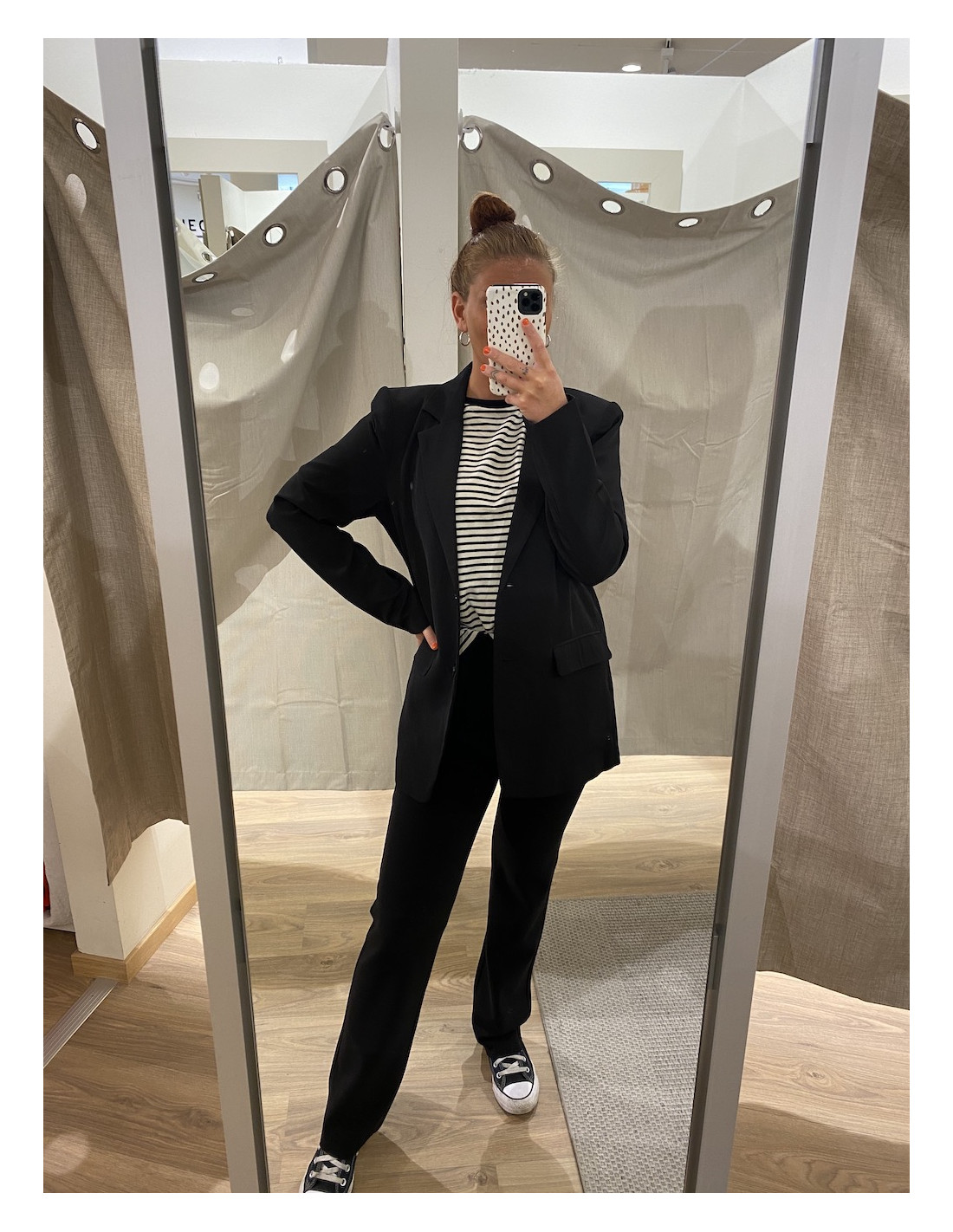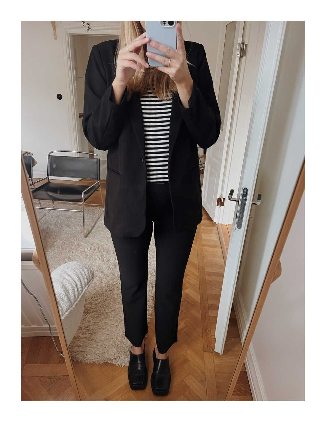 Kajsa bär storlek L/32 och är 179 cm lång. (Gravid på bilderna)