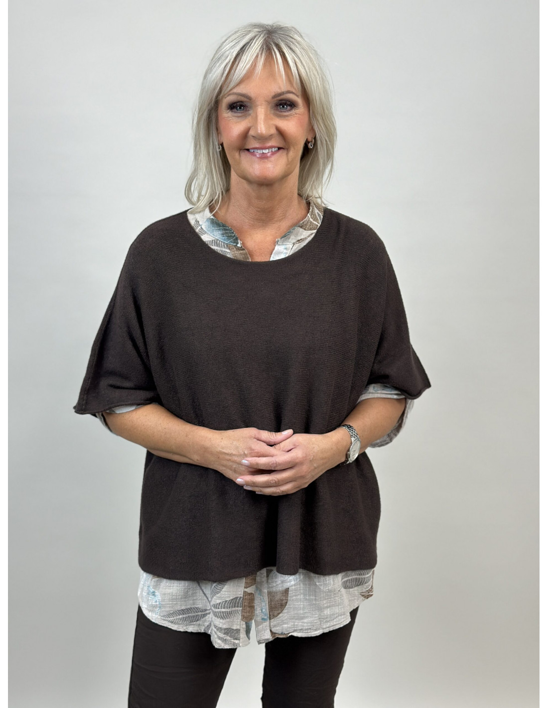 Stickad poncho med vid ärm.