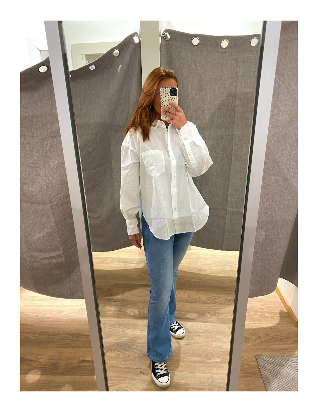 Amanda är 168 cm lång och bär s/30.