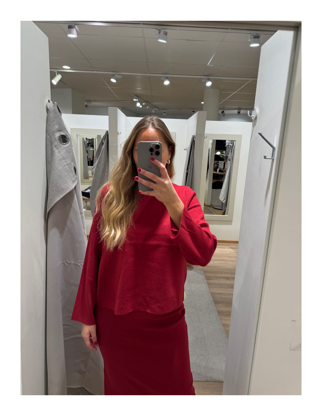 Stretchig, slits baktill och resår i midjan.