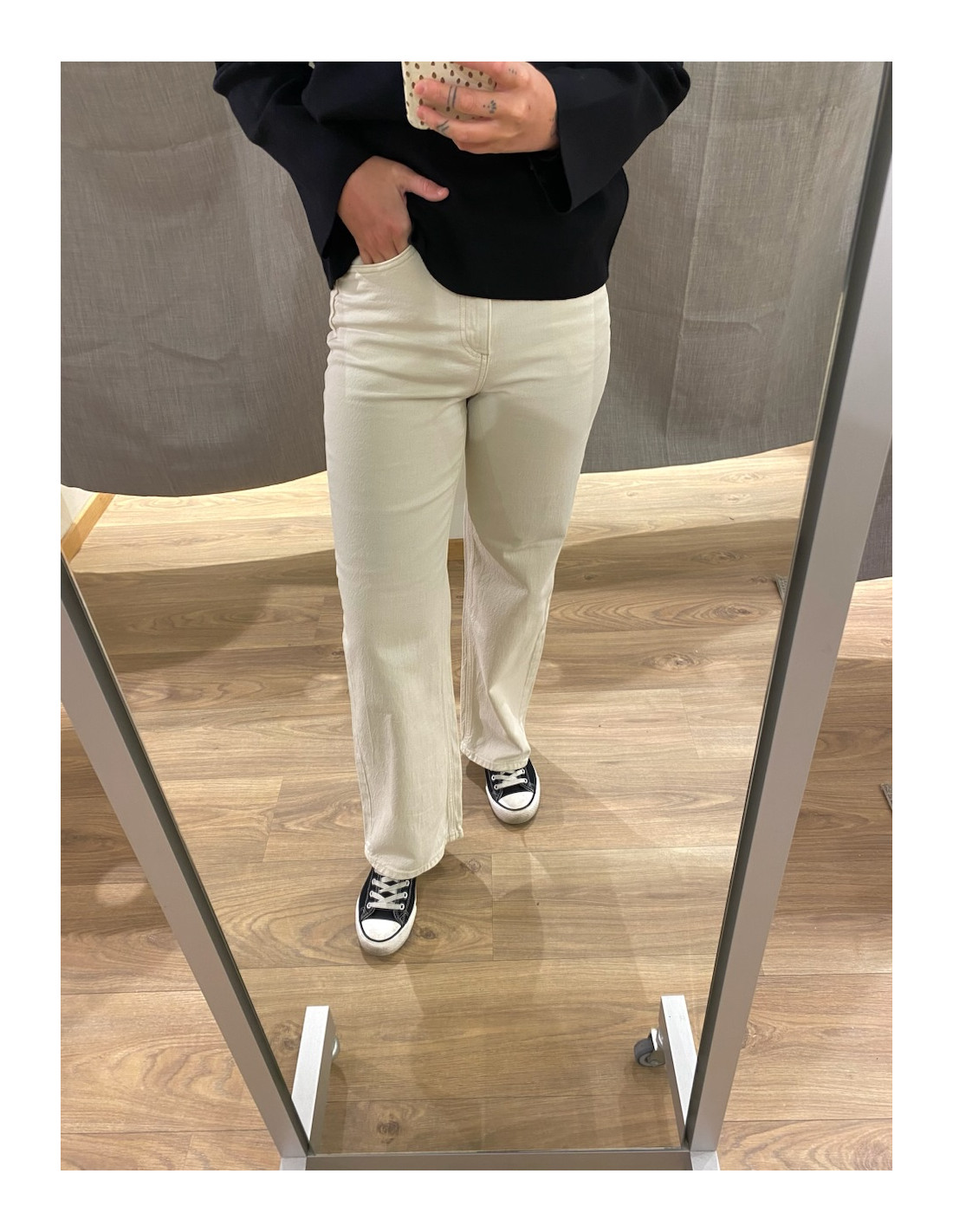 Amanda bär 28/30 och är 168 cm lång.