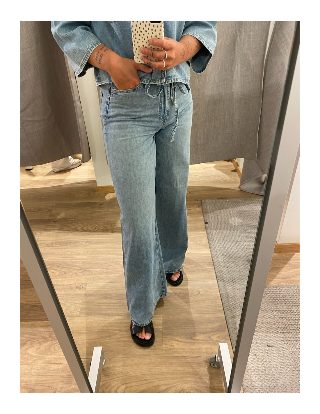 Amanda bär 28/32 och är 168 cm lång.