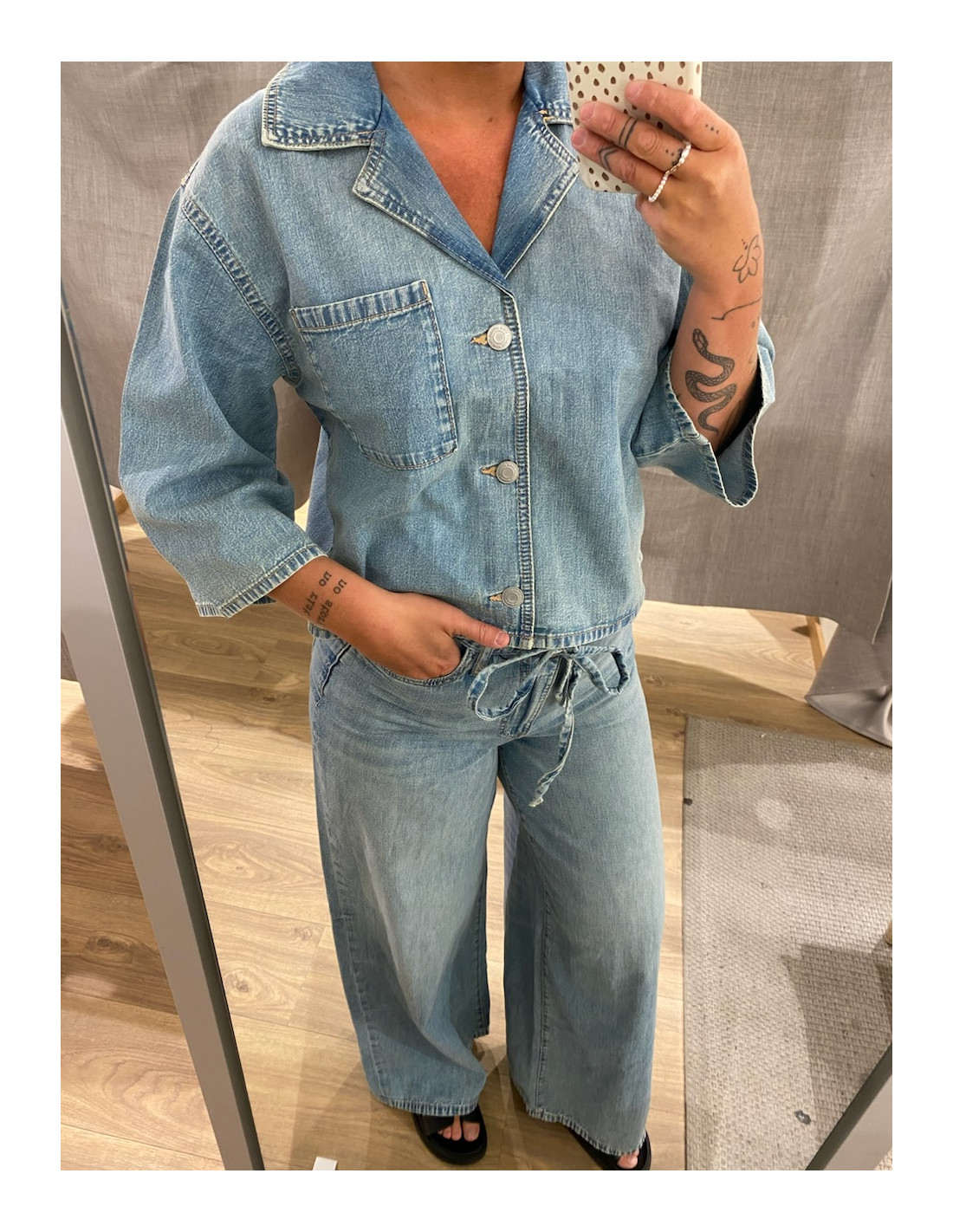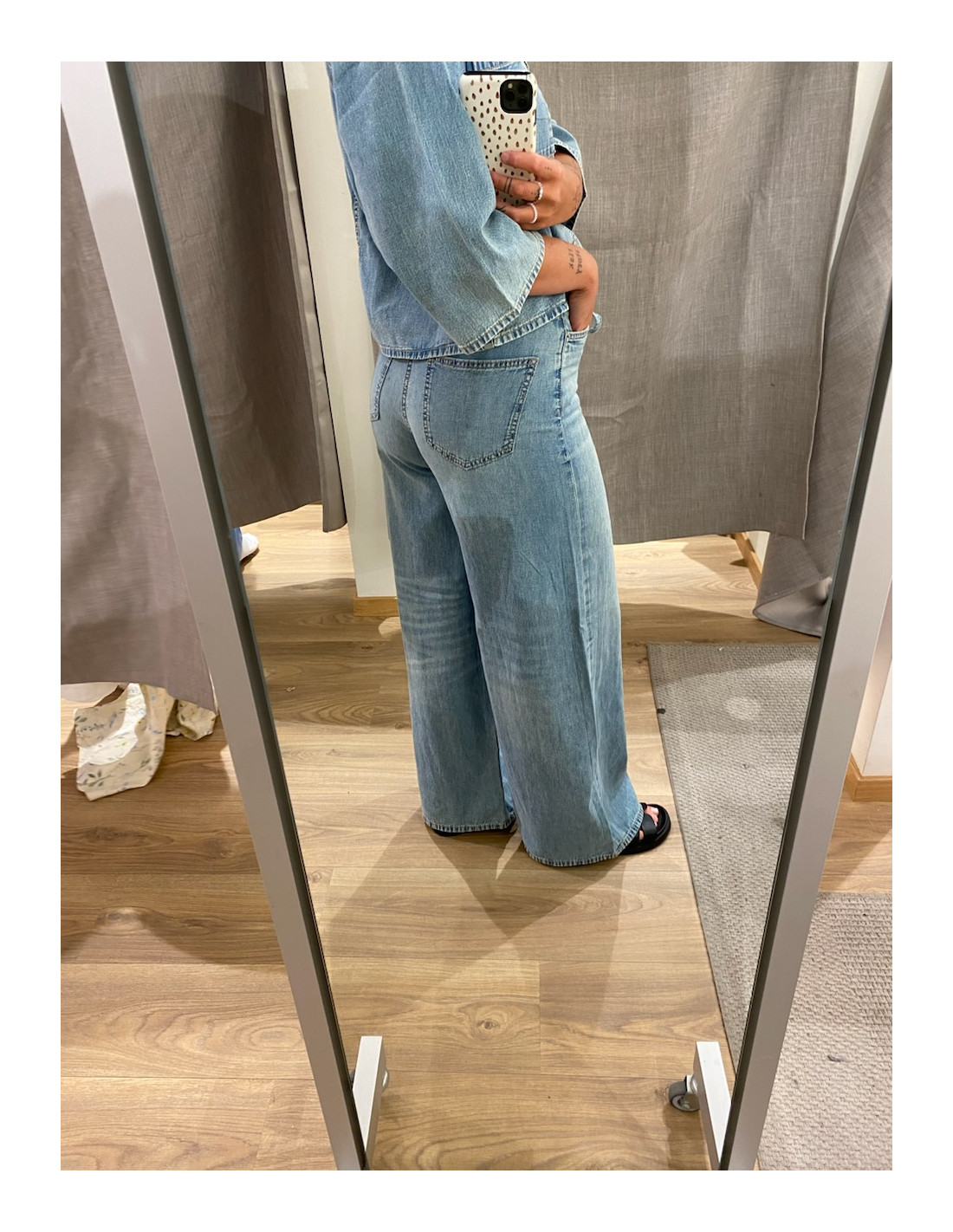 Jeans med vidare ben och mjuk i modellen.