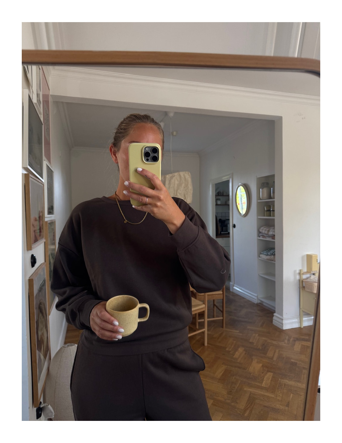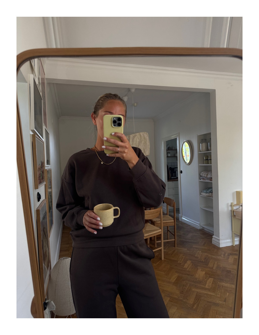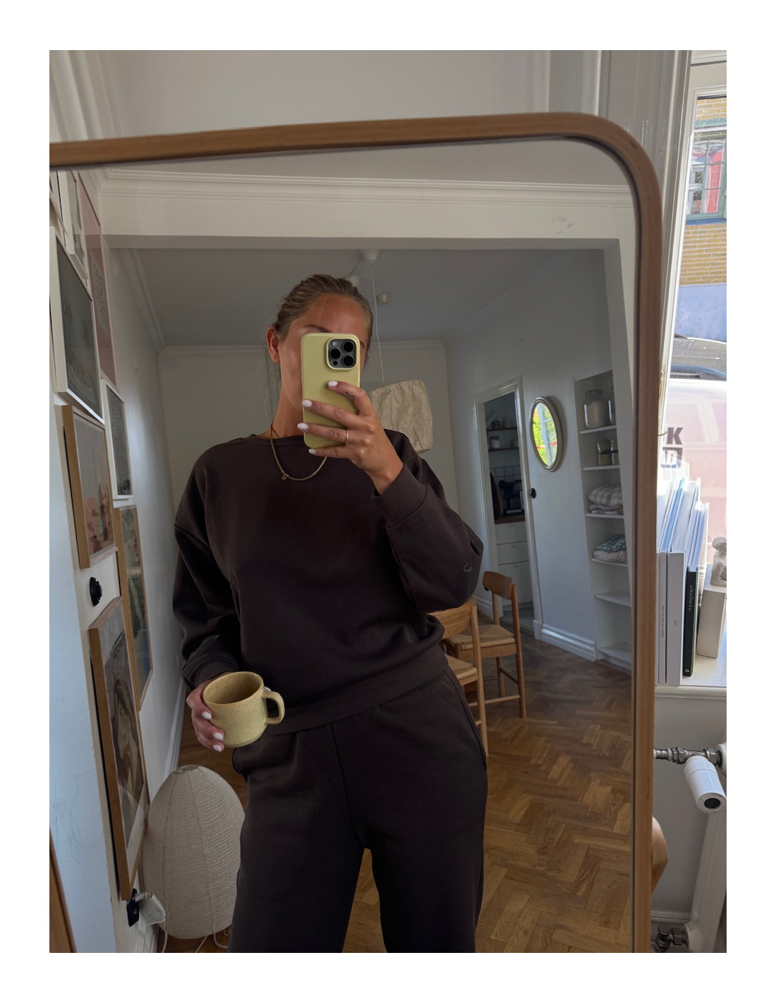 Sweatshirt i något boxig modell, rundhalsad halsringning.