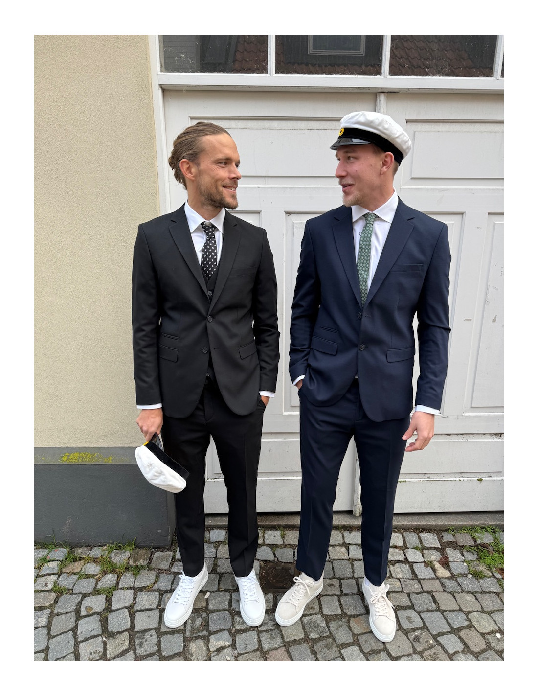 Figurnära modell med tvåknappsknäppning.