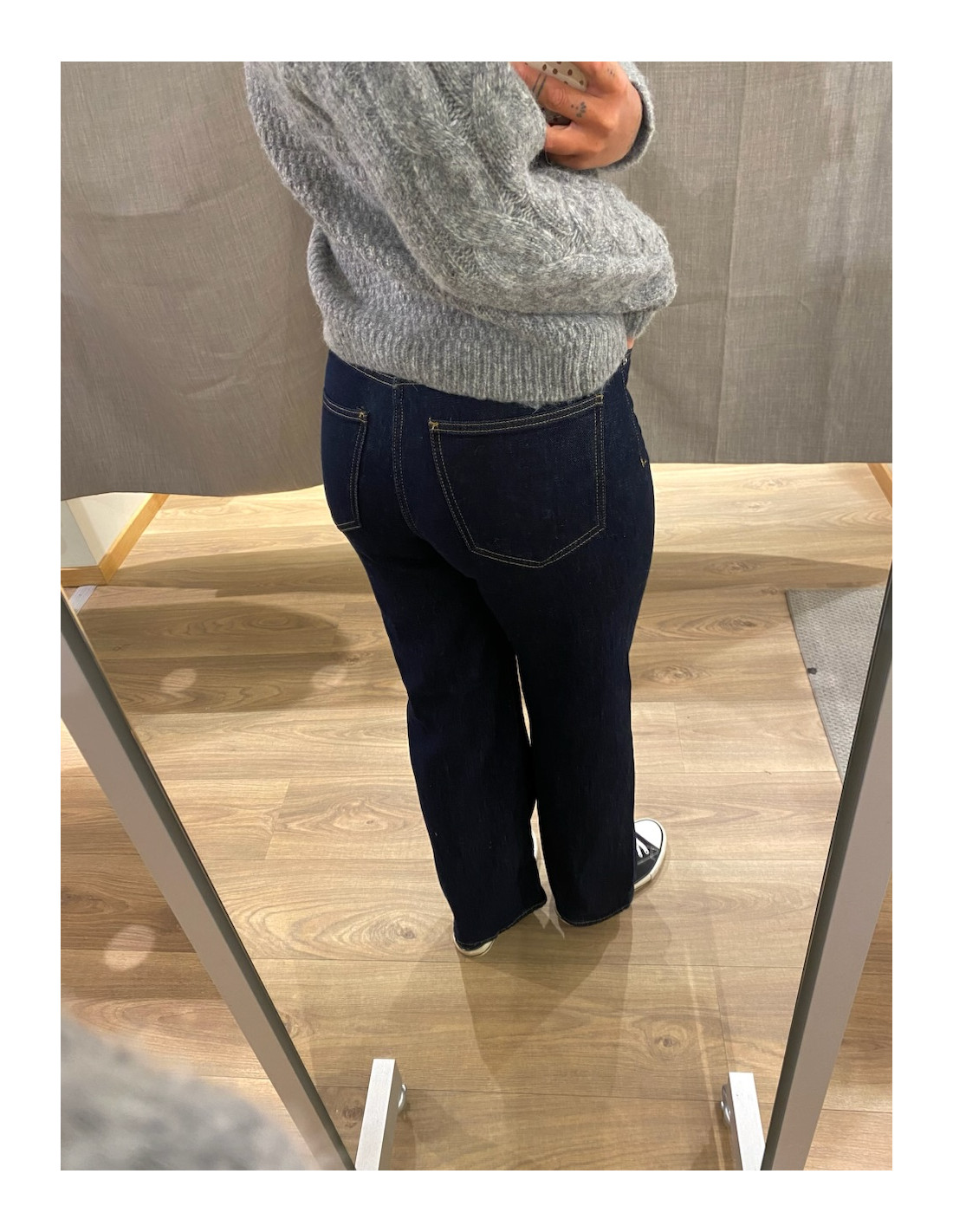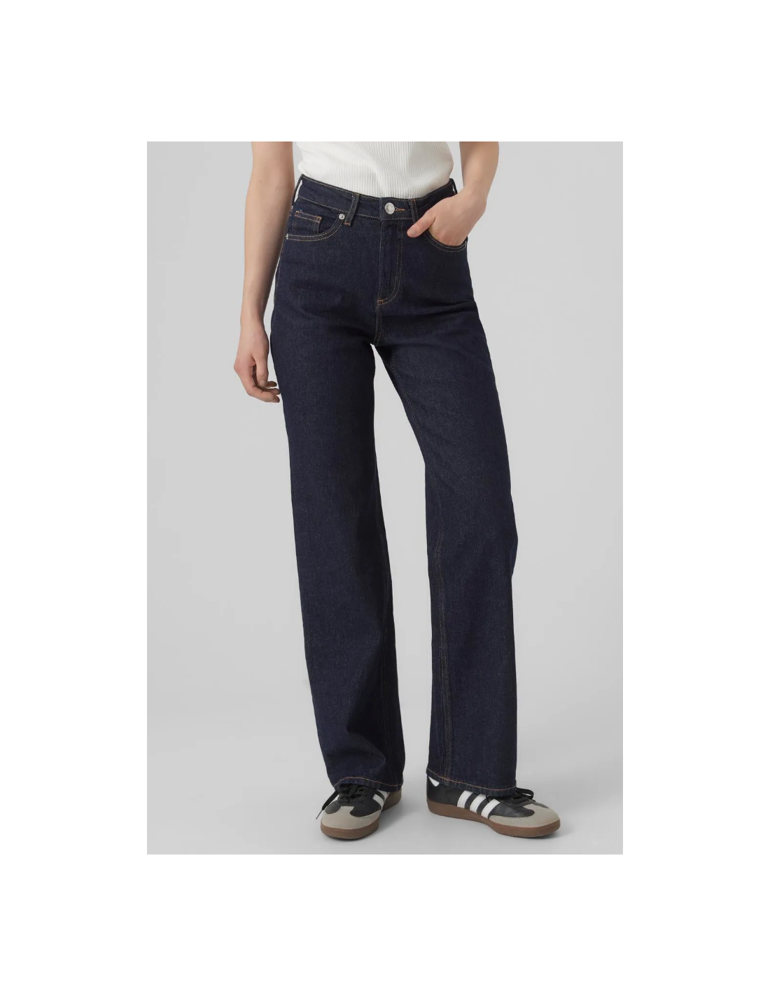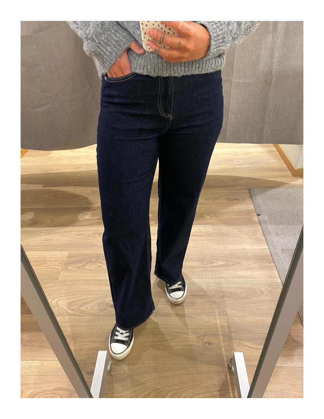 Vid jeans i mörkblå denim. Lite stretch och hög midja.