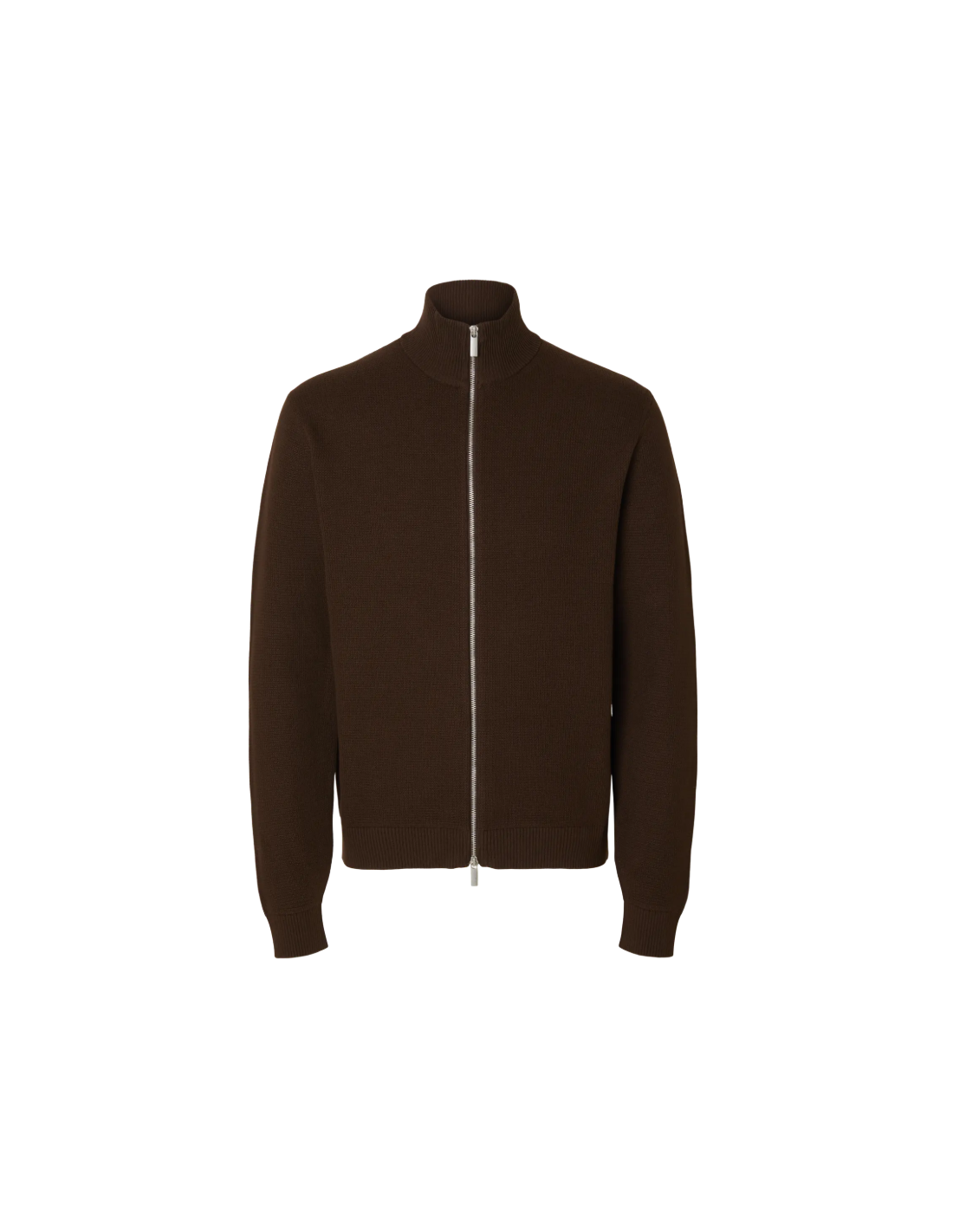 - Stickat material - Hög krage - Ribbstickning i nederkant, vid ärmsluten och på kragen