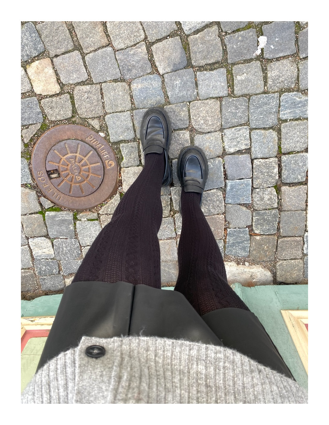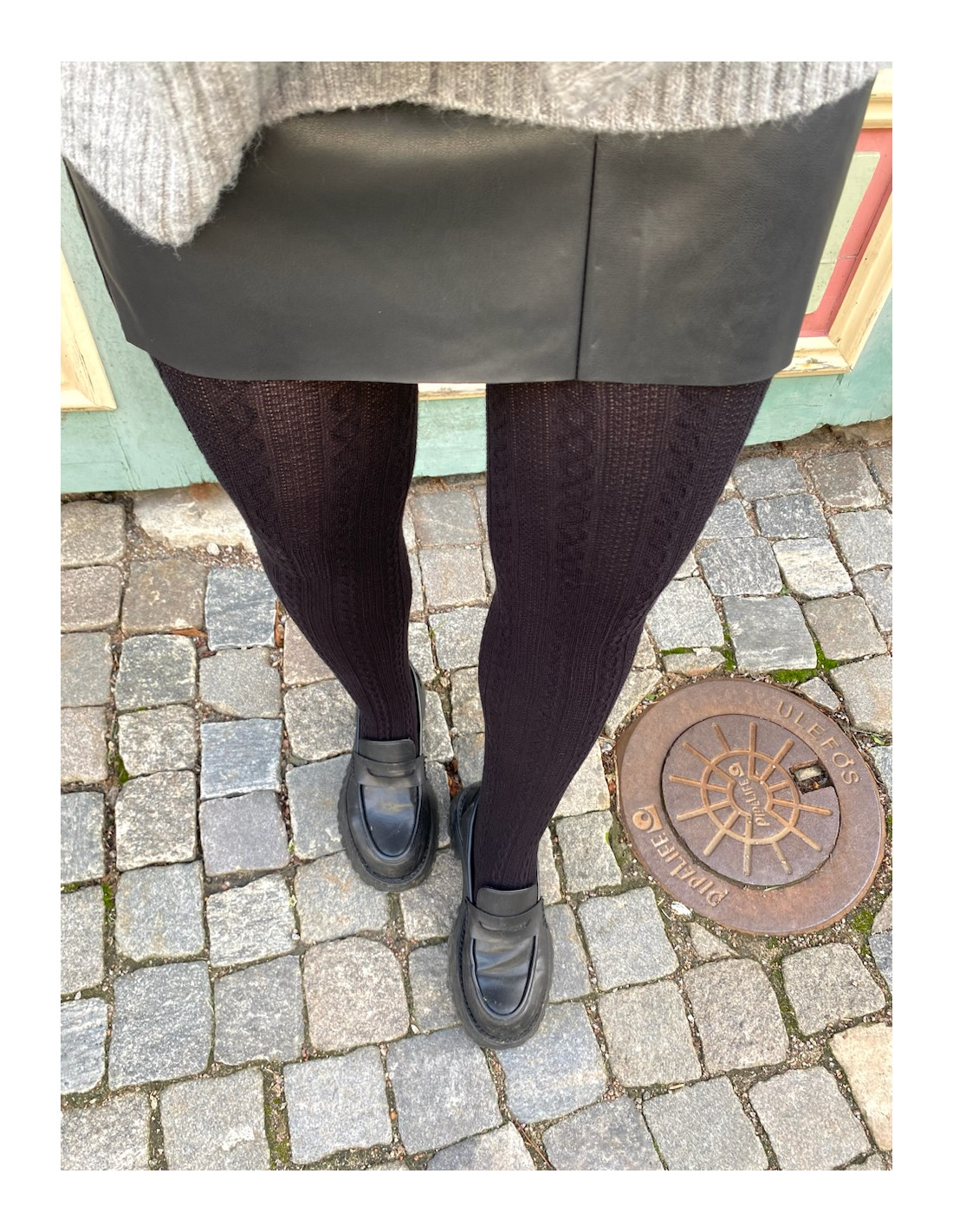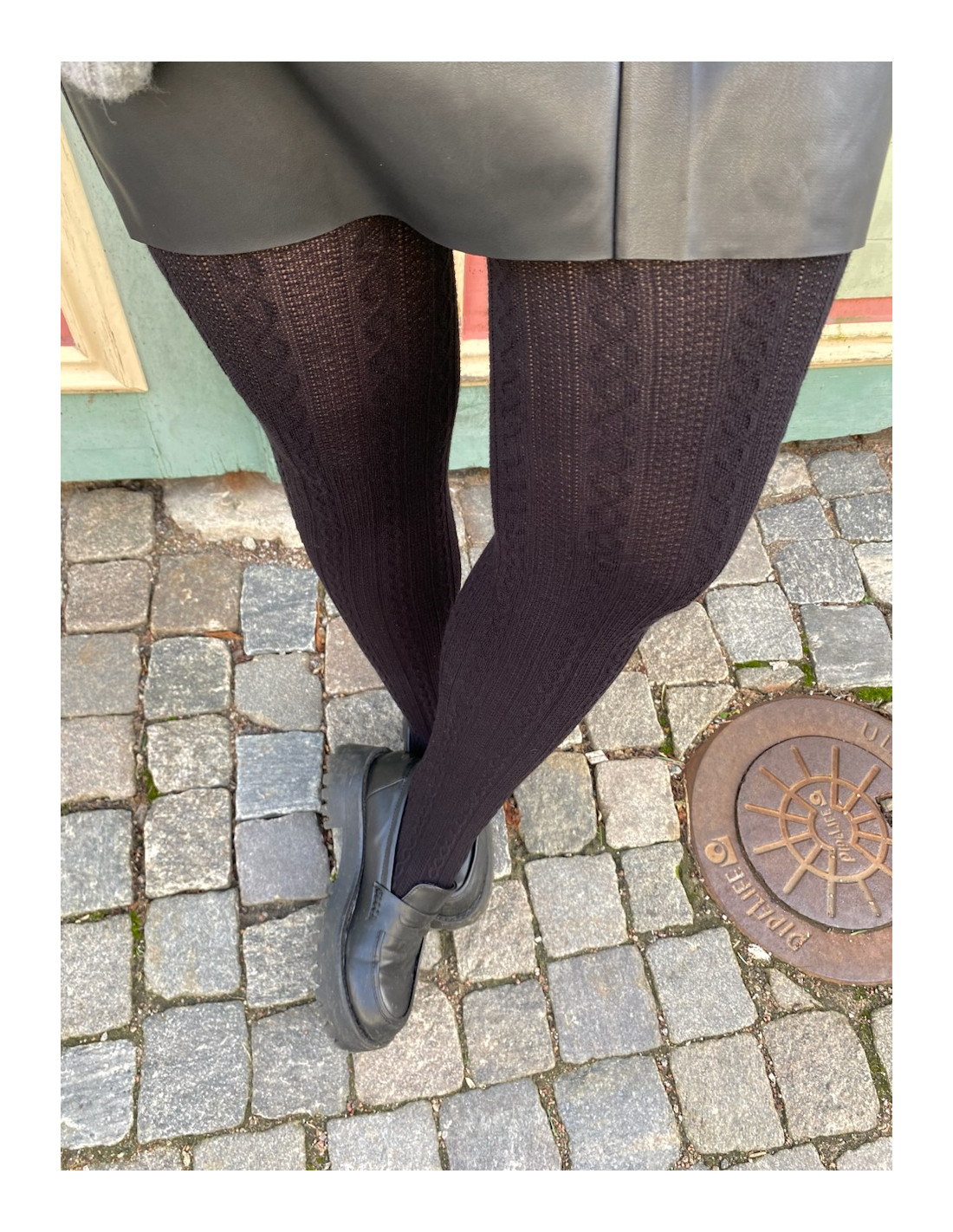 Tights med kabelstickad struktur.