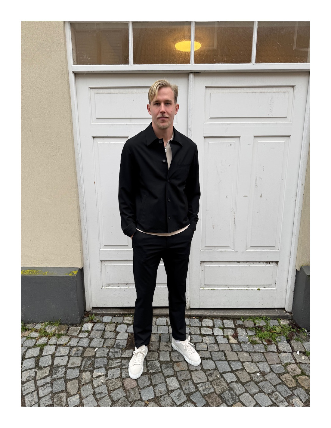 Normal i storlek. Herman bär stl L.