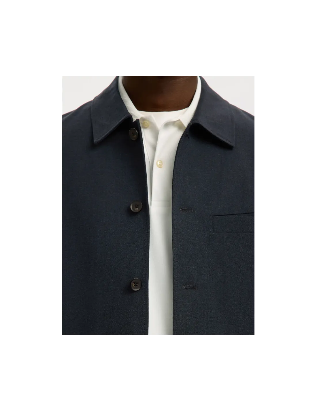 Knappar hela vägen samt krage och bröstficka.