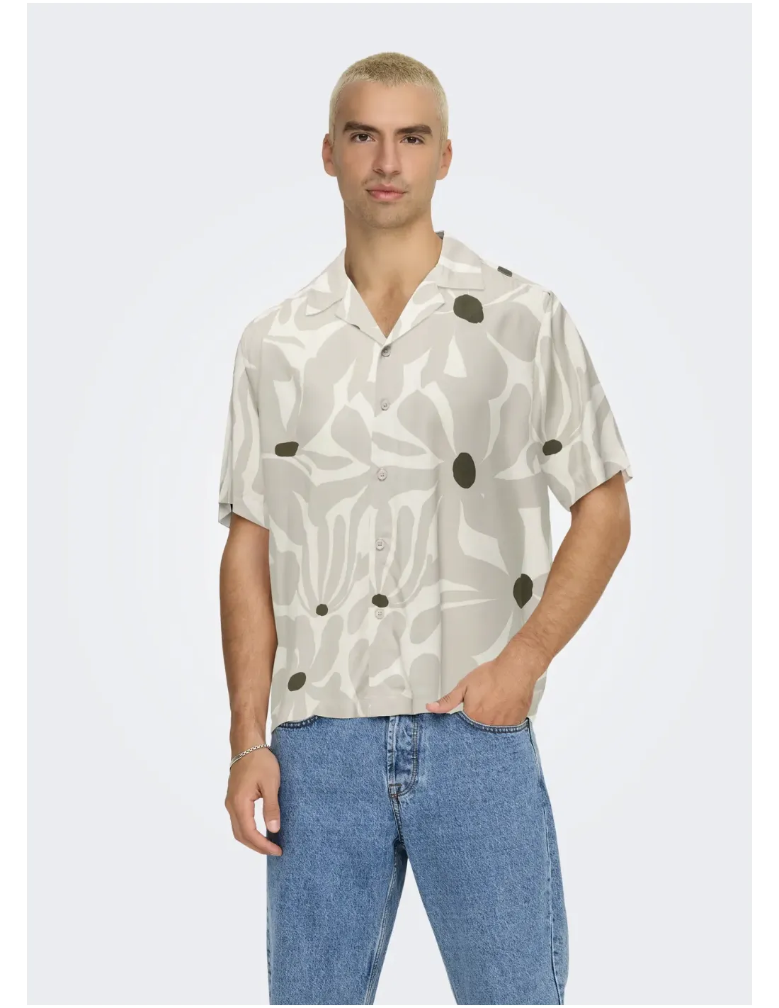 Riktigt cool viskosskjorta med kort ärm och slag i halsen.