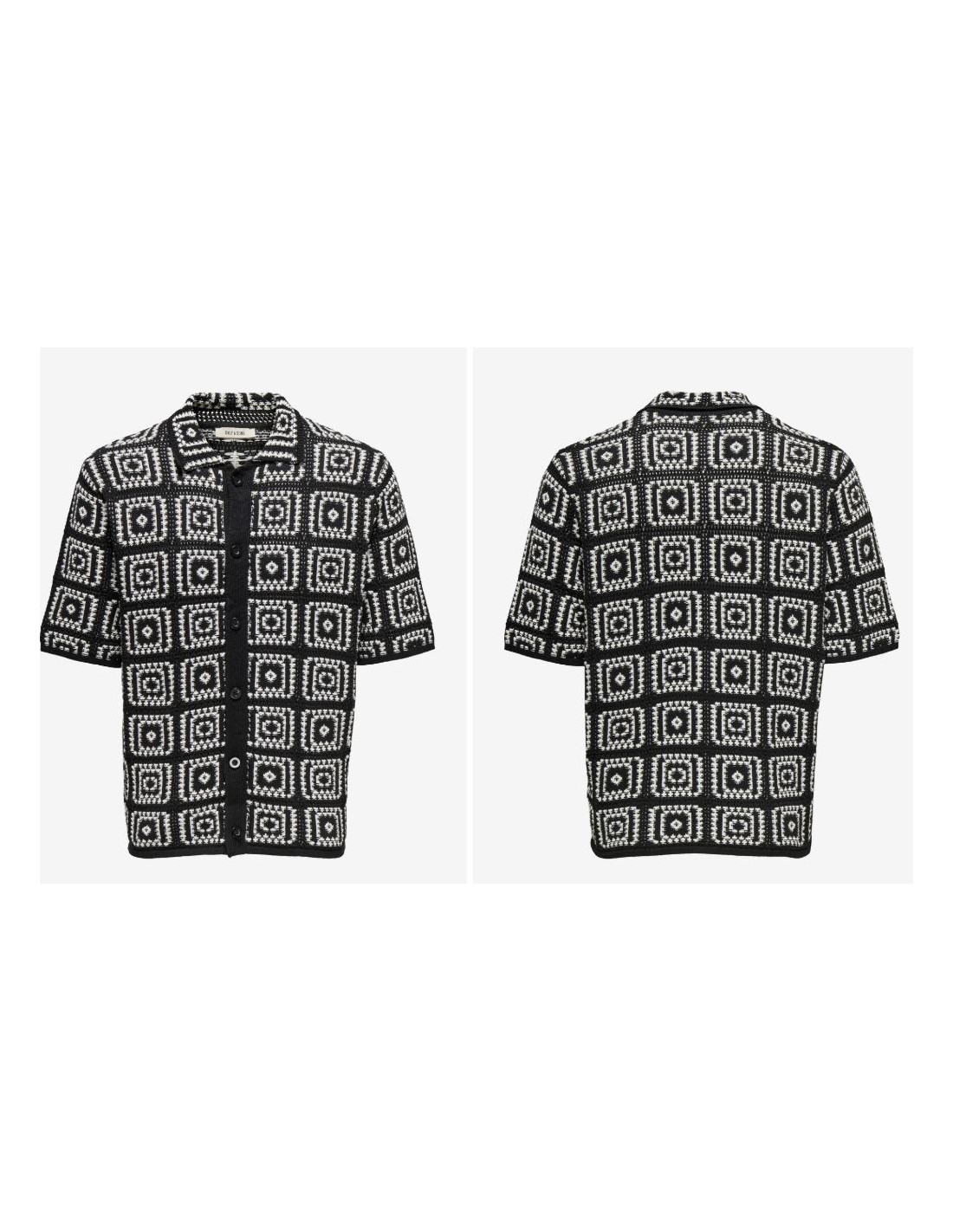 Wow! Kolla in denna otroliga skjorta i 100% bomull.  Finns i svart och beiget. Virkad liksom. Tänk i vår och sommar till jeans, shorts, linnebyxor.. stängd som synes eller öppen på en vit T-shirt.. vi älskar!