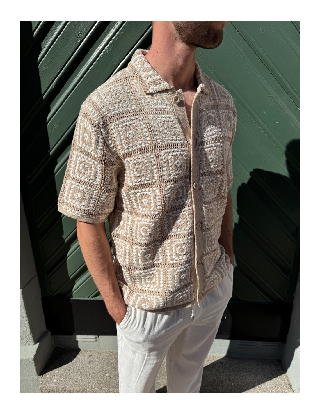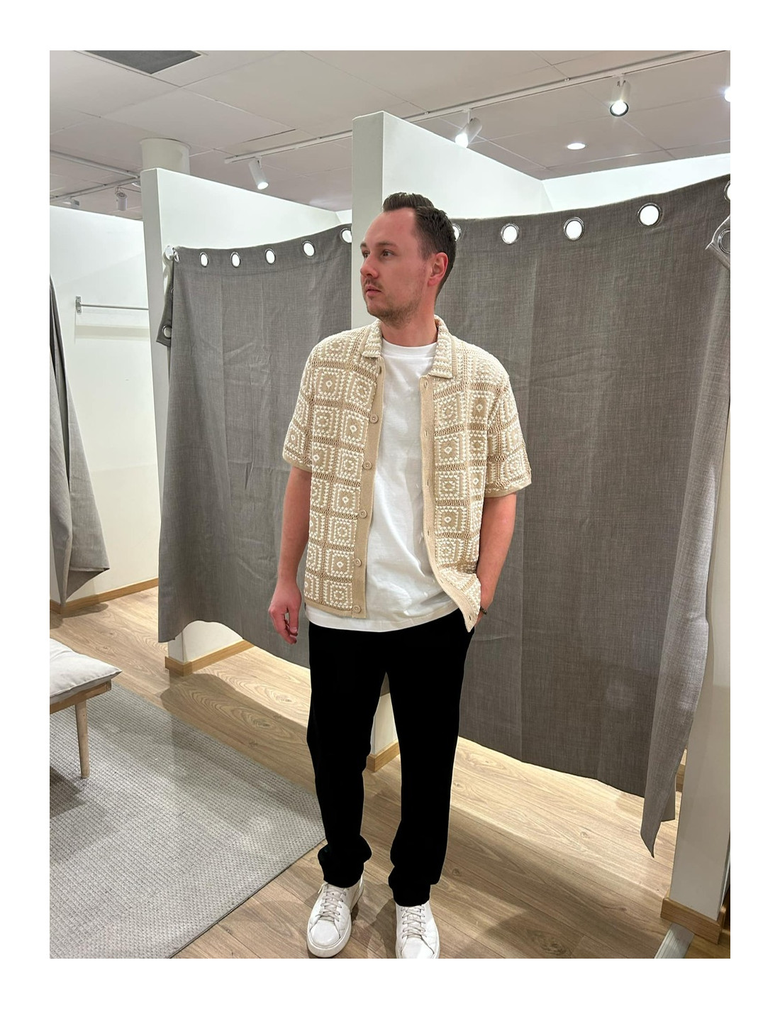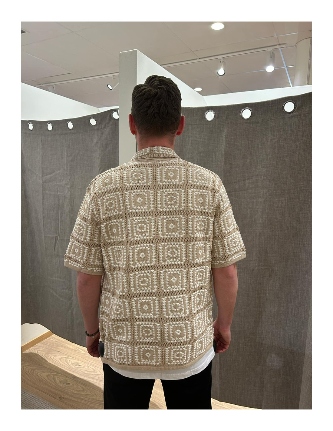 Wow! Kolla in denna otroliga skjorta i 100% bomull.  Finns i svart och beiget. Virkad liksom. Tänk i vår och sommar till jeans, shorts, linnebyxor.. stängd som synes eller öppen på en vit T-shirt.. vi älskar!