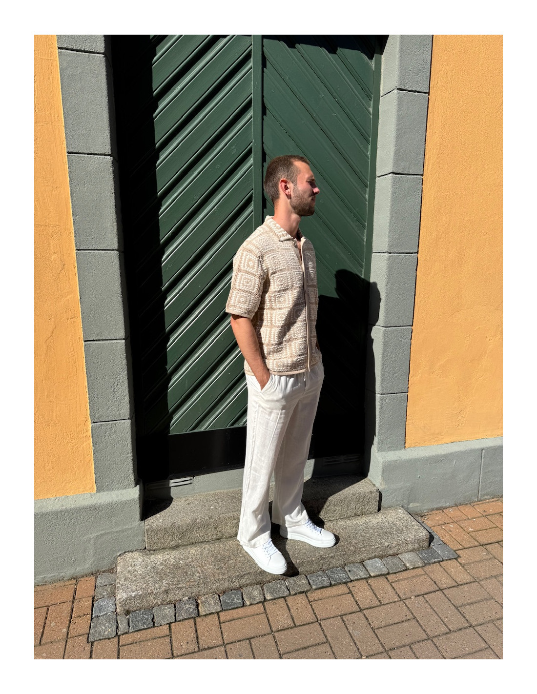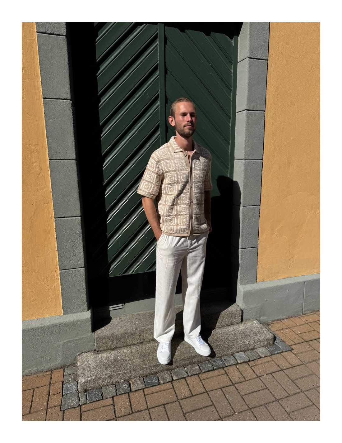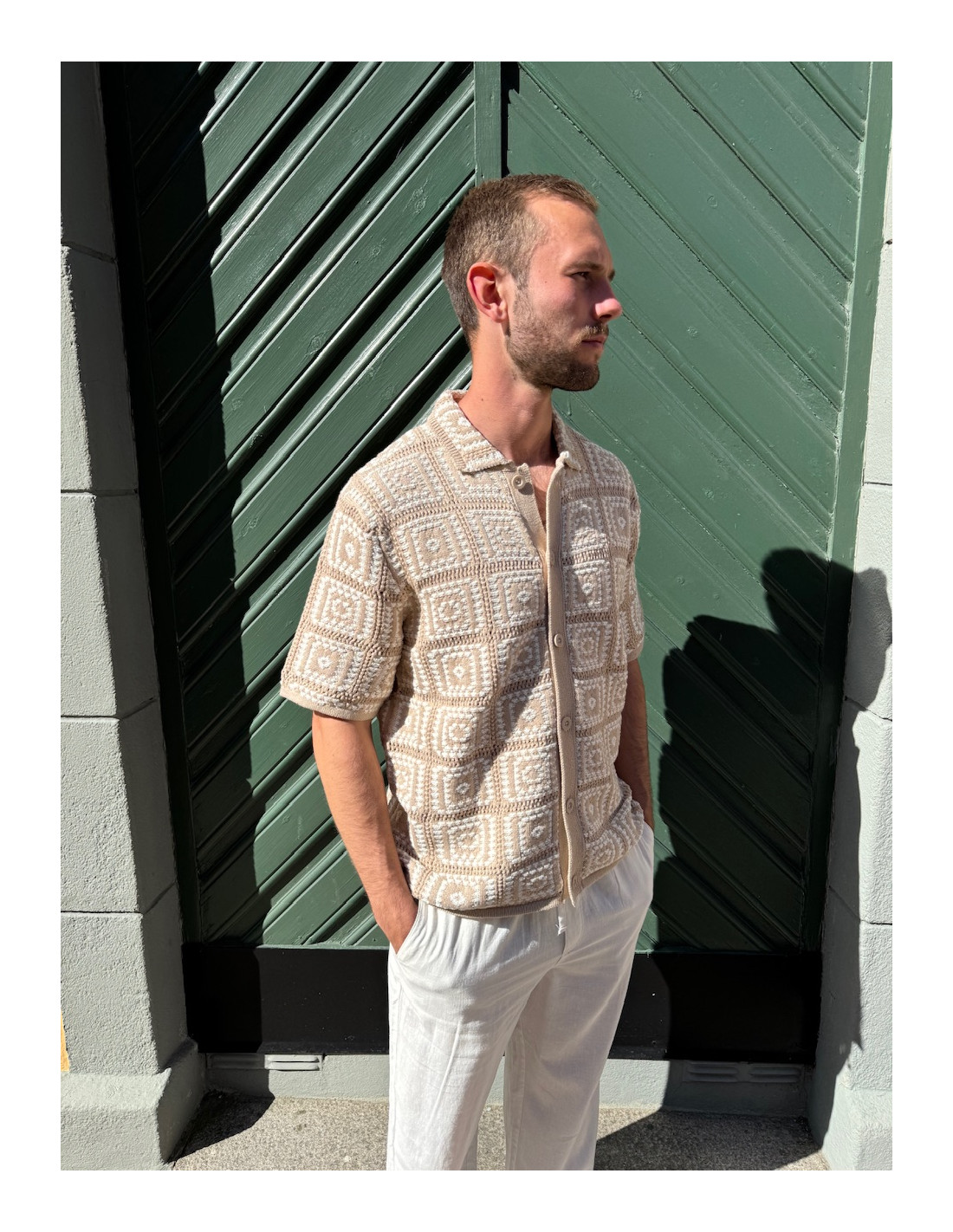 Wow! Kolla in denna otroliga skjorta i 100% bomull.  Finns i svart och beiget. Virkad liksom. Tänk i vår och sommar till jeans, shorts, linnebyxor.. stängd som synes eller öppen på en vit T-shirt.. vi älskar!