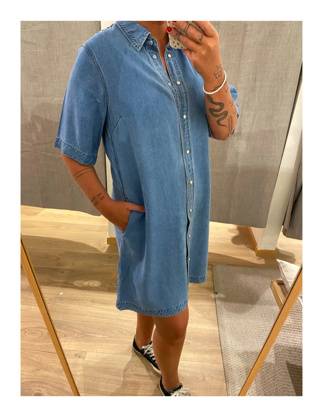 Jeansklänning med 2/4 dels ärm, i det mjukaste jeanstyget. Med fickor i sidan.