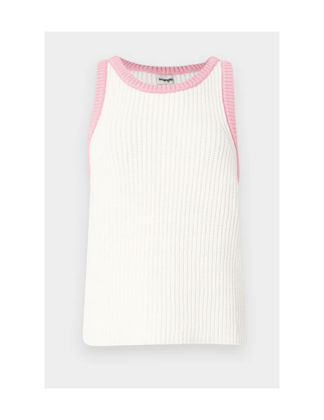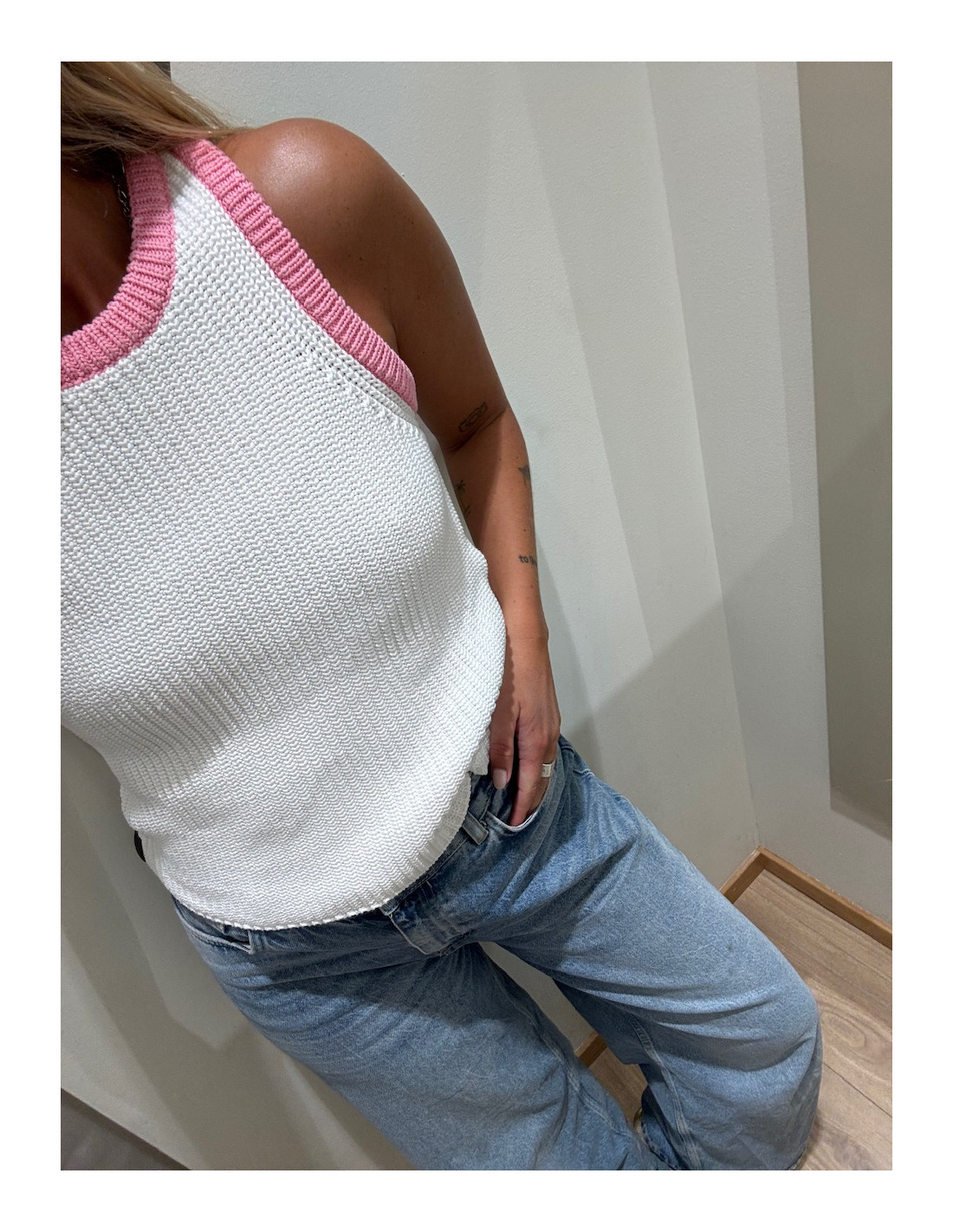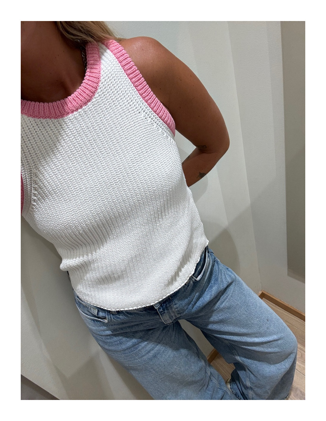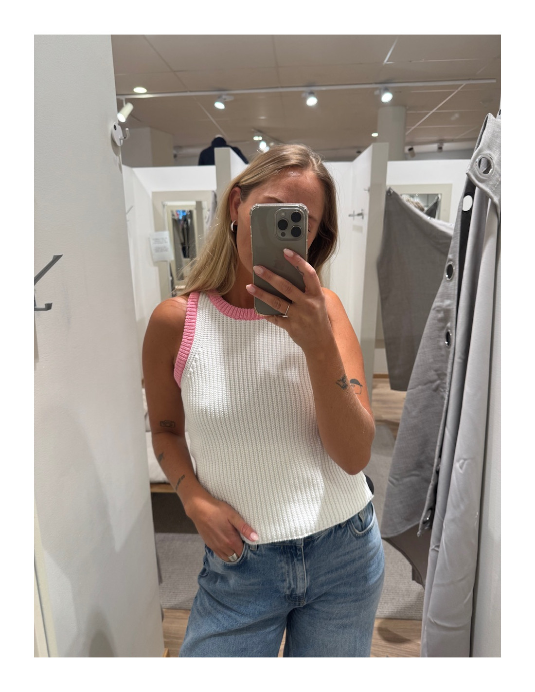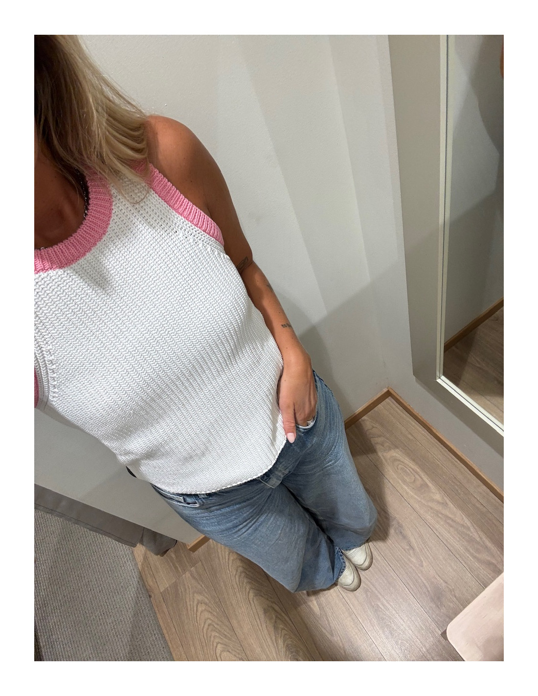 Otroligt fint ribbstickat linne / väst. Vitt med rosa kontrastfärg.