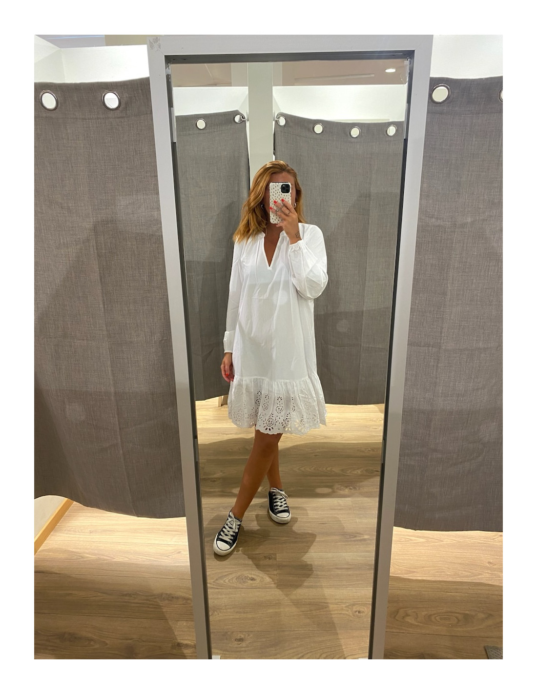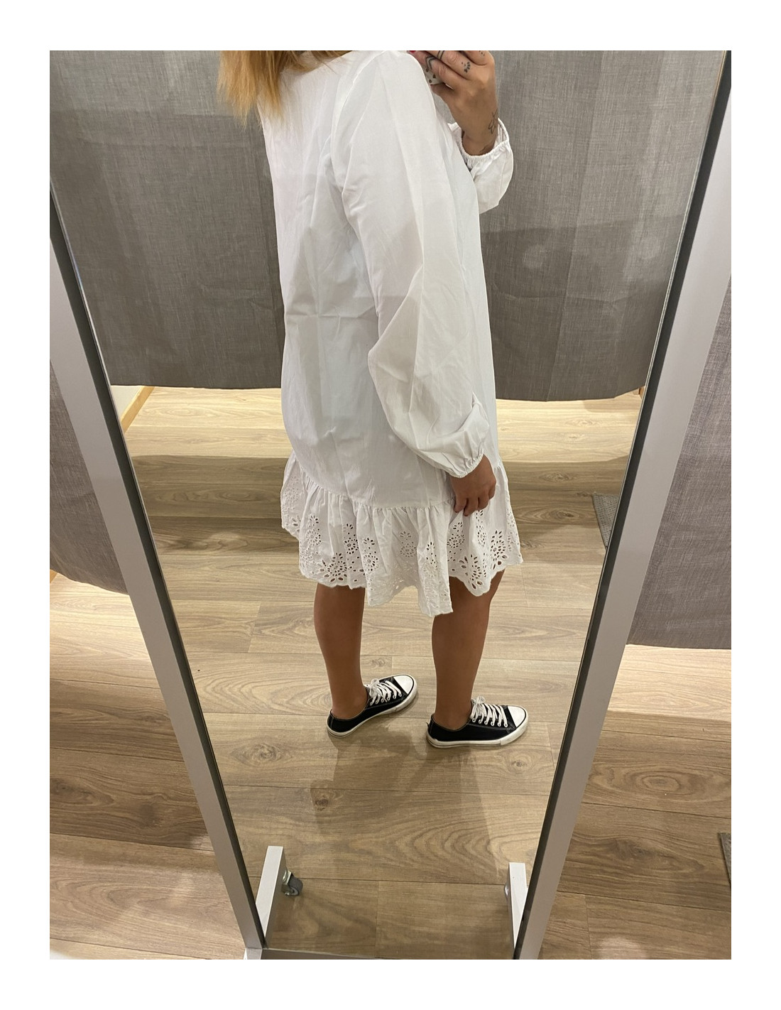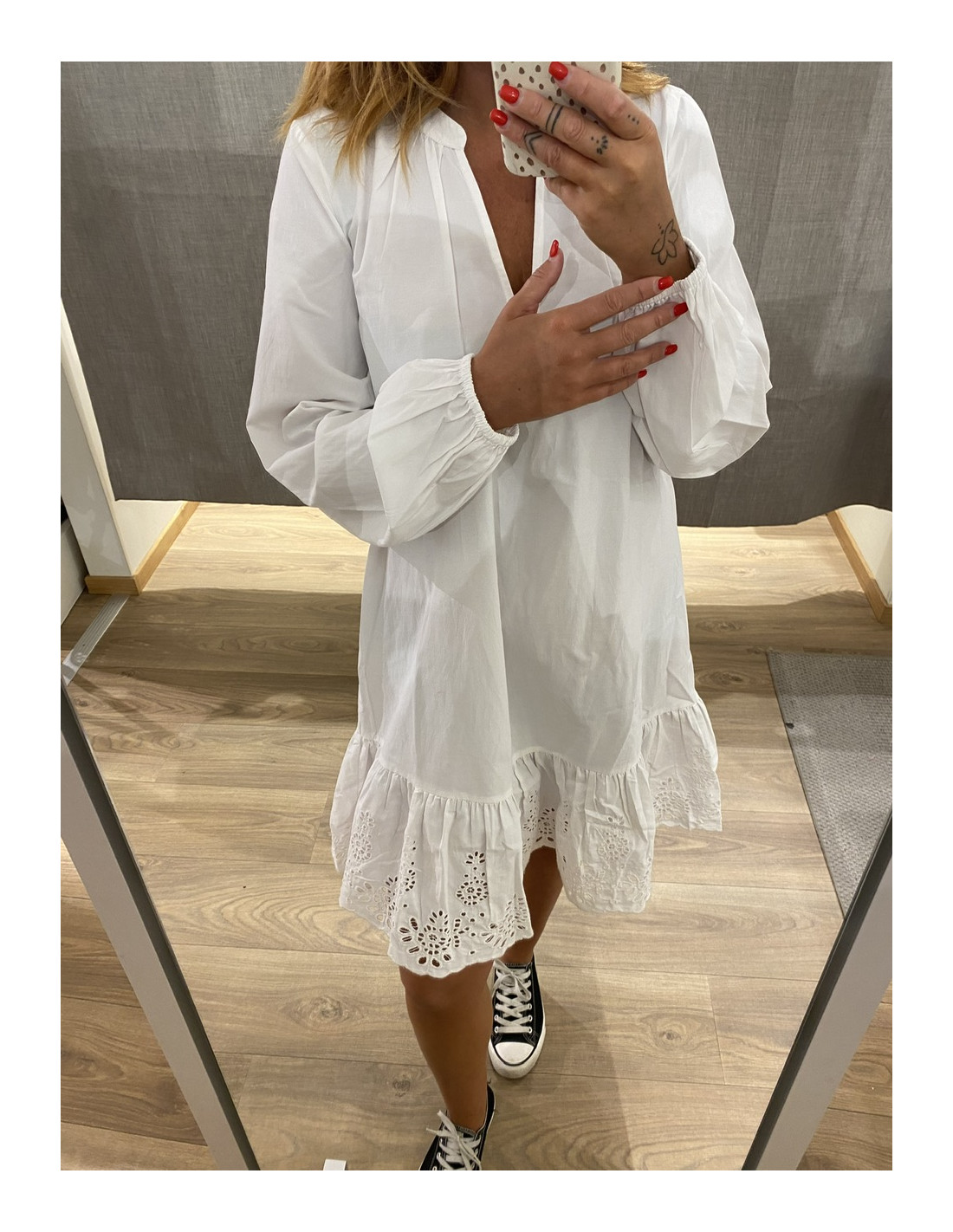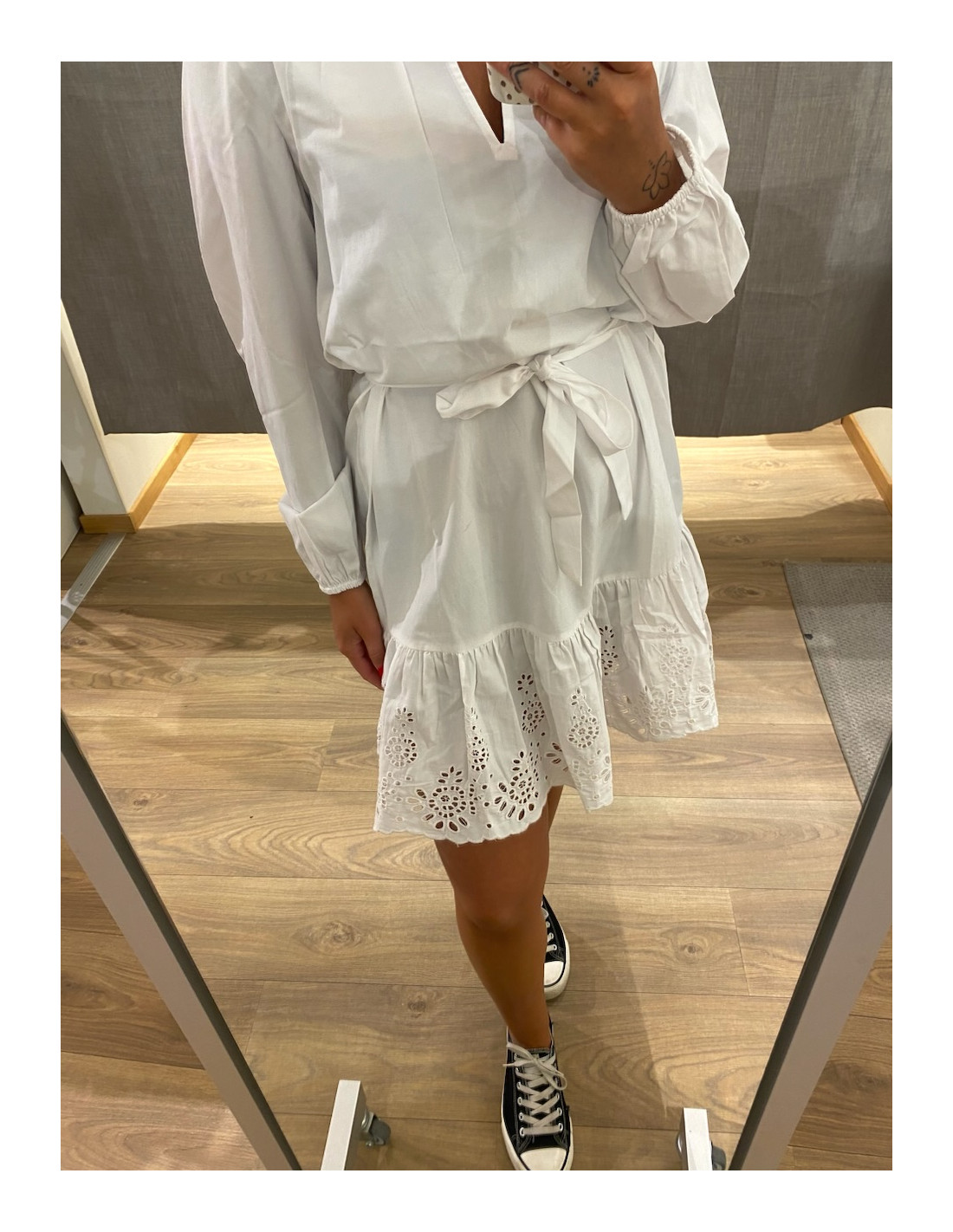 • Klänning med broderad volangkant nedtill