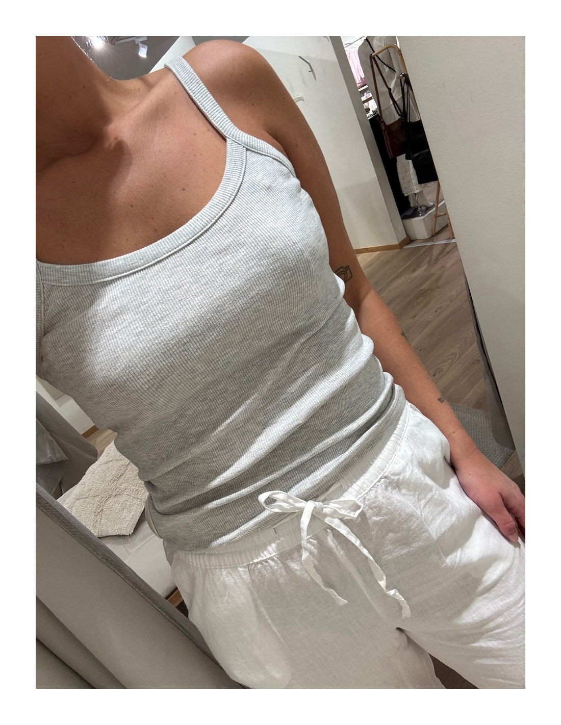 Ribbat linne med smala band.