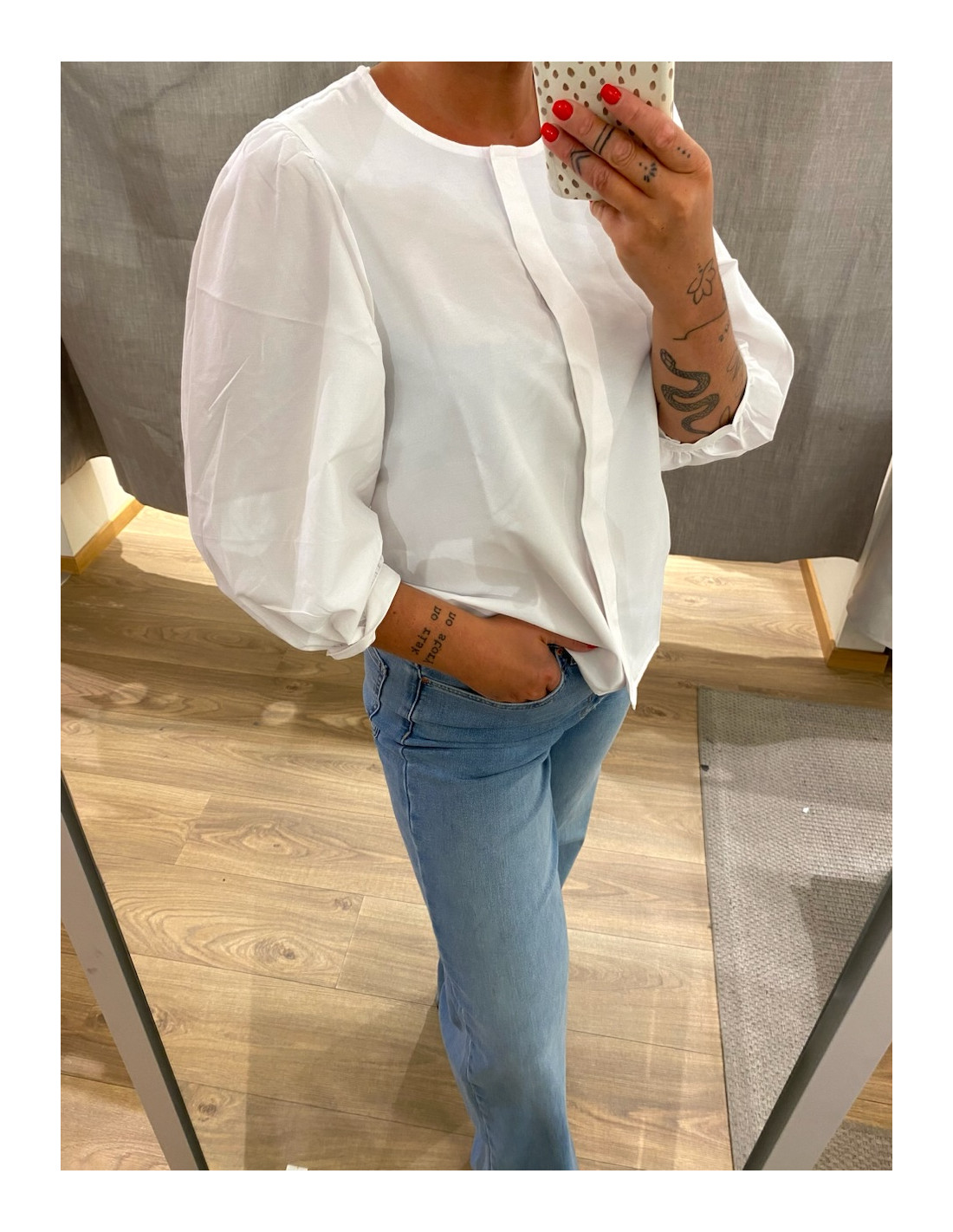 Så fin blus med knappar framtill.