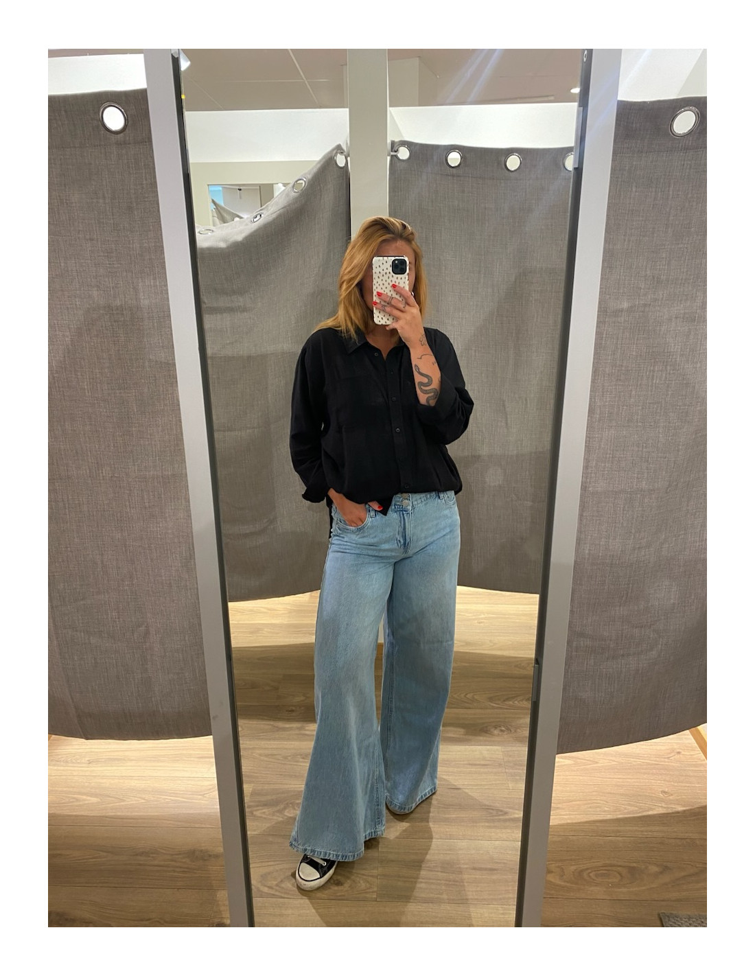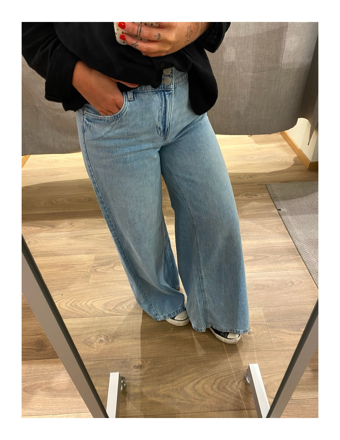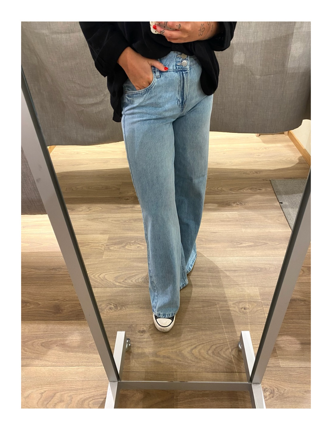 Amanda bär 28/32 och är 168 cm lång.