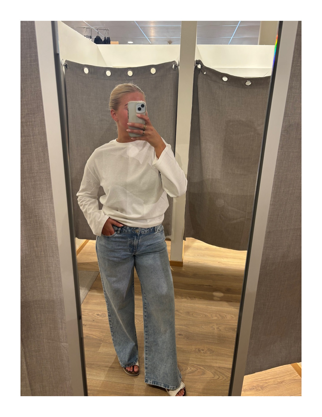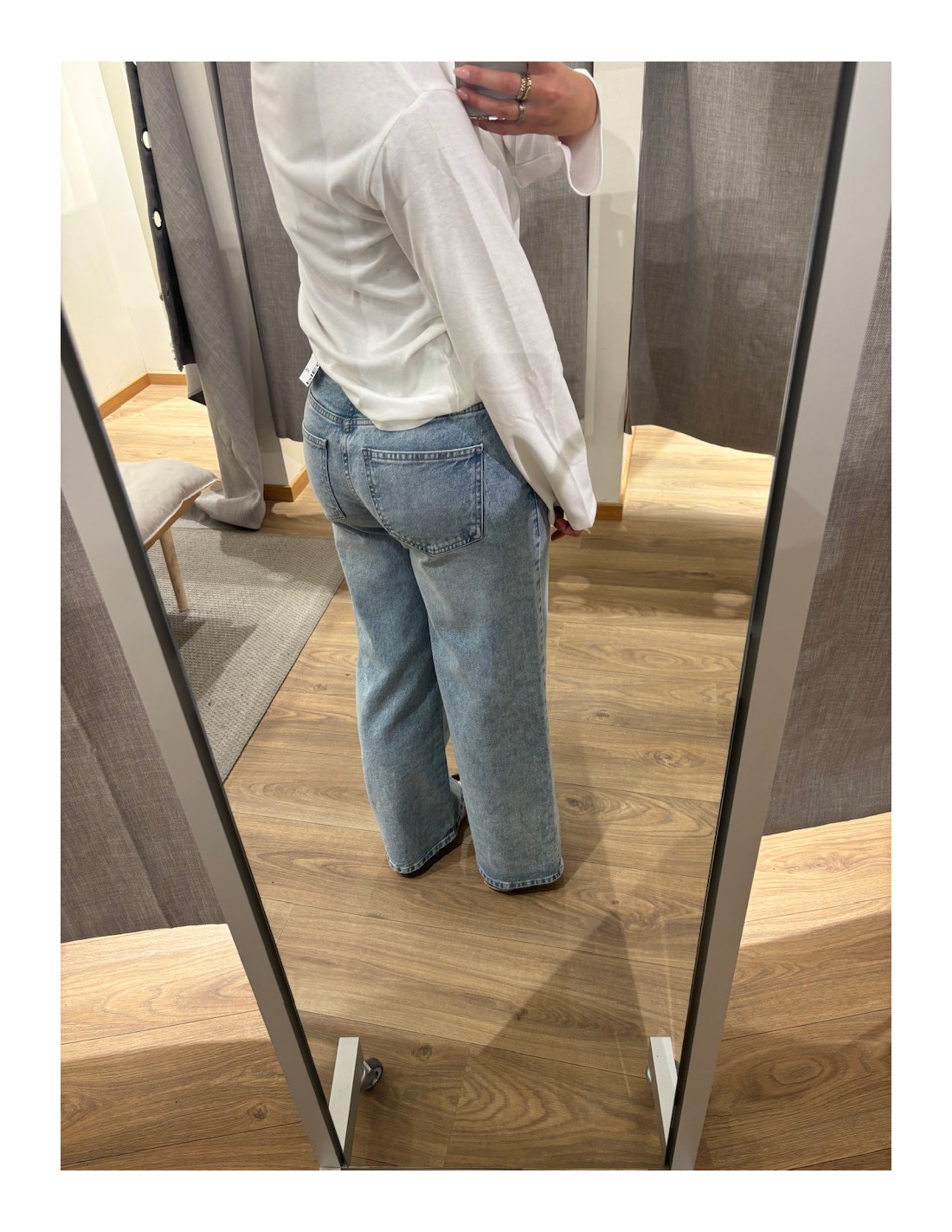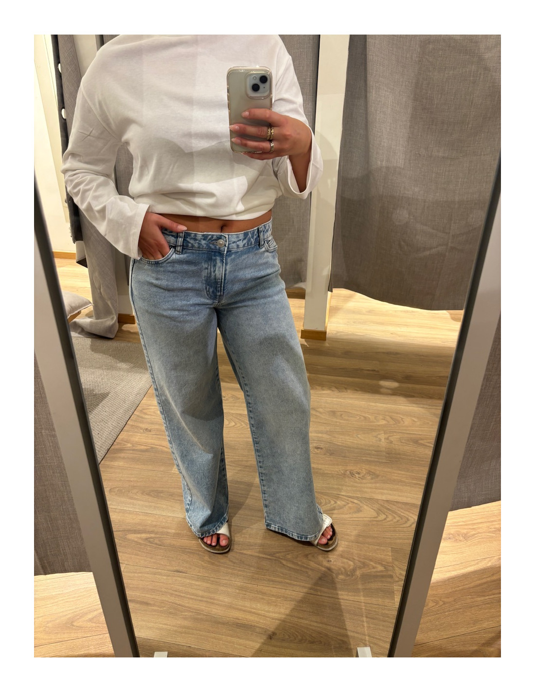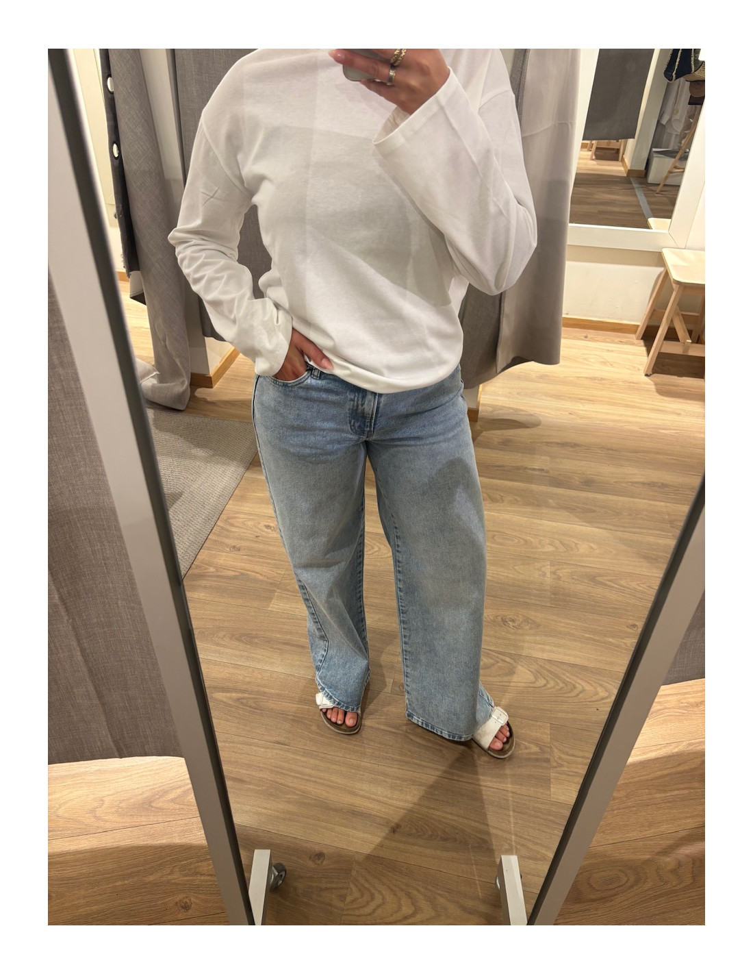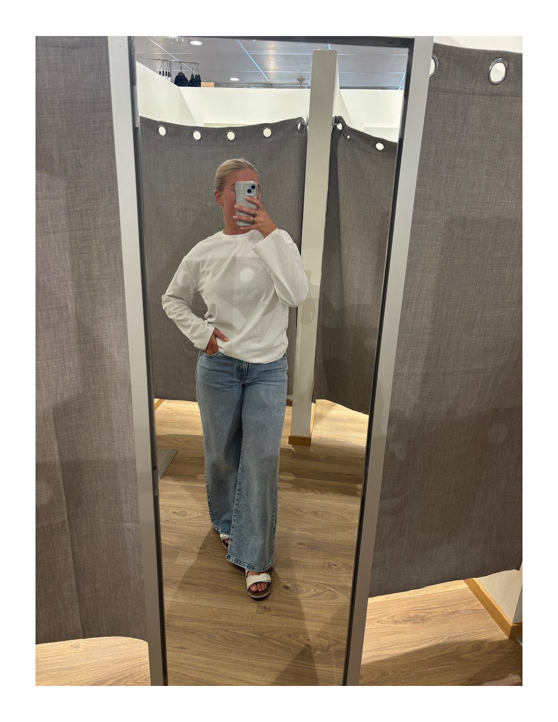 Ida är 163cm lång och bär 28/30. Normal i storlek, men om man står mellan storlekar rekommenderar vi den mindre.