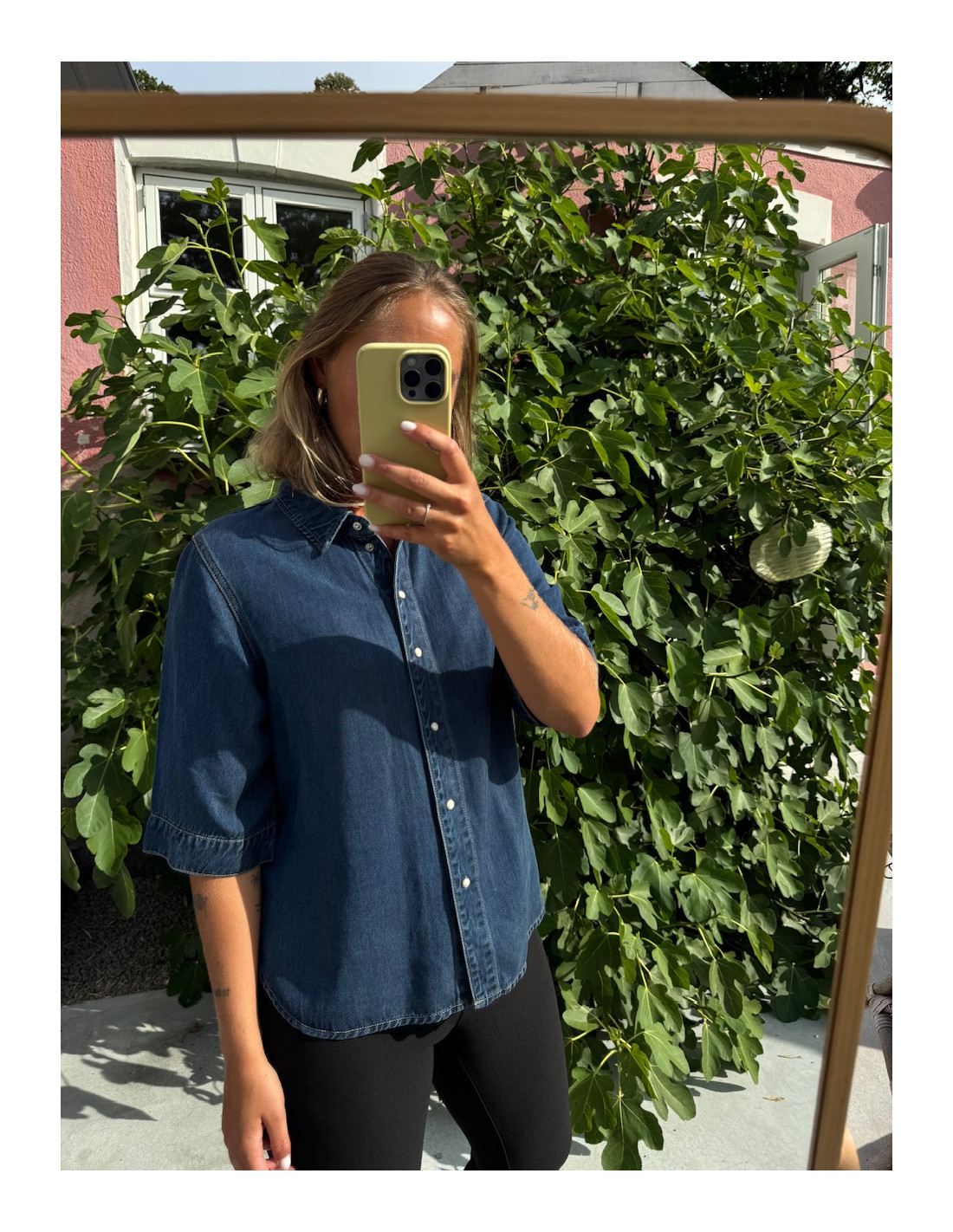 INNEHÅLLER TENCEL™ LYOCELL Huvudmaterialet i denna produkt innehåller minst 50% lyocellfibrer av märket TENCEL™, högkvalitativa cellulosafibrer gjorda av trämassa från hållbart skötta skogar och producerade på ett sätt som minskar miljöpåverkan.- Kortärmad denimskjorta - Normal krage - Knappslå med tryckknappar - Halvlånga ärmar - Normal passform INNEHÅLLER TENCEL™ LYOCELL Huvudmaterialet i denna produkt innehåller minst 50% lyocellfibrer av märket TENCEL™, högkvalitativa cellulosafibrer gjorda av trämassa från hållbart skötta skogar och producerade på ett sätt som minskar miljöpåverkan.