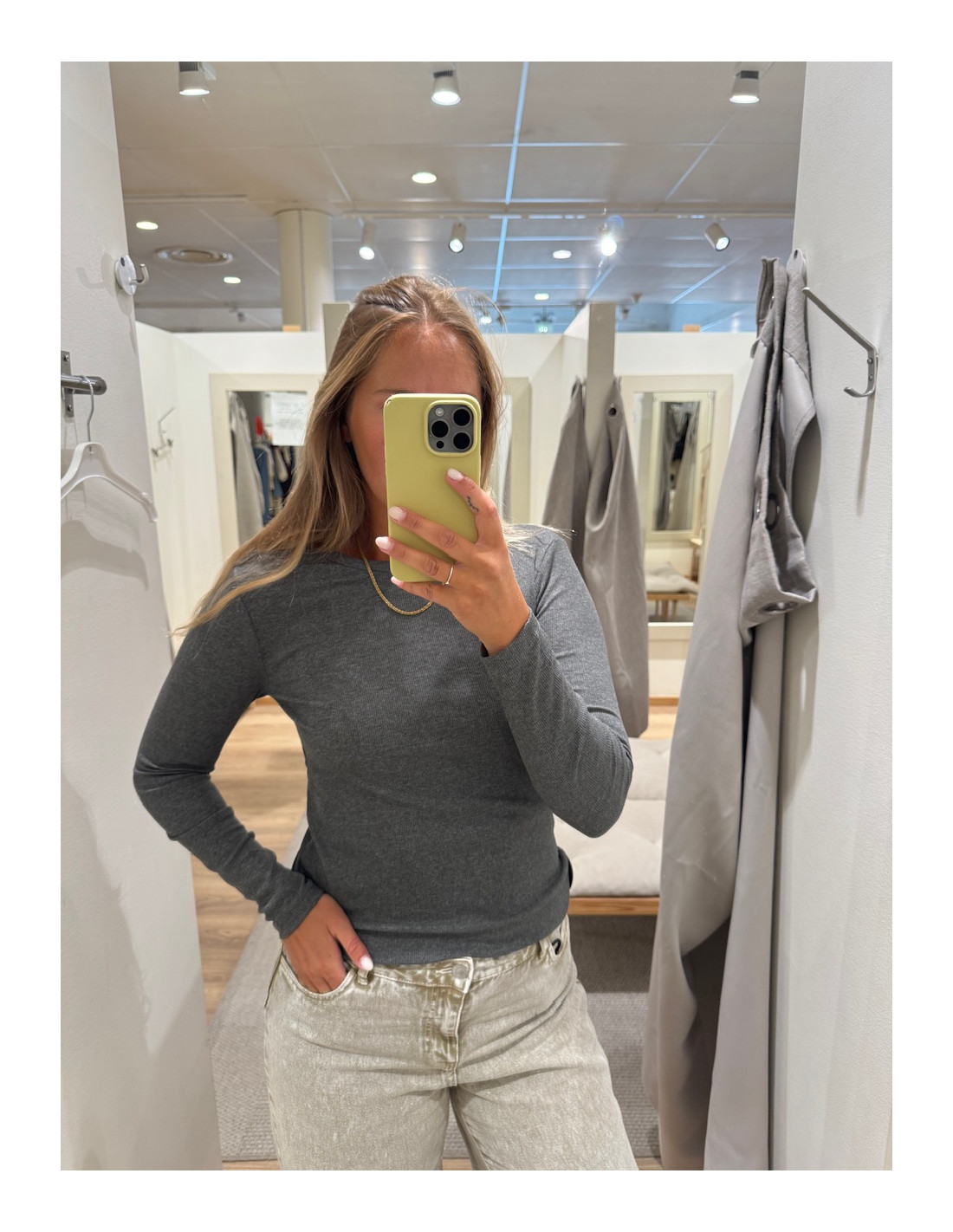 Riktigt härlig nyinkommen tröja i ribbat glansigt material med stretch.