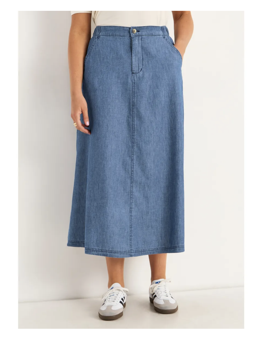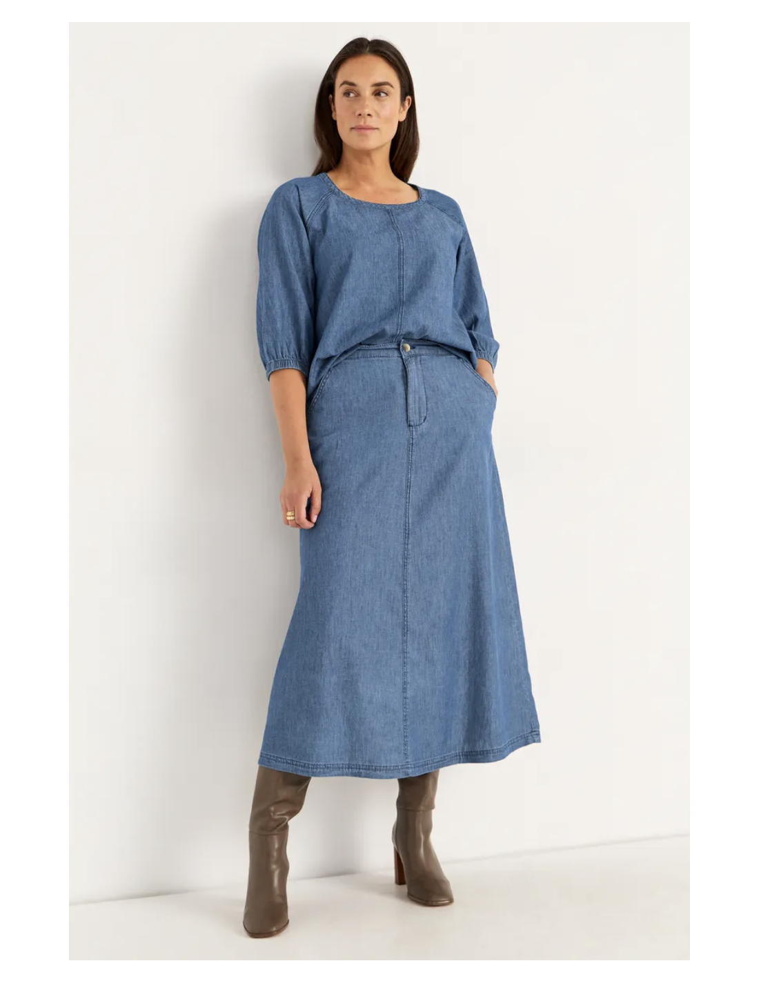 • Vävd kjol i supermjuk, lite tunnare denim.