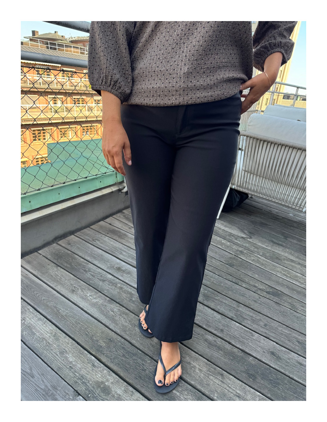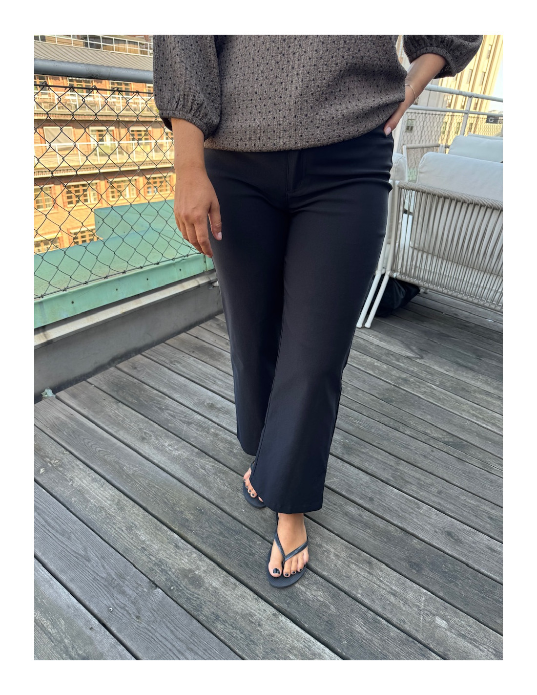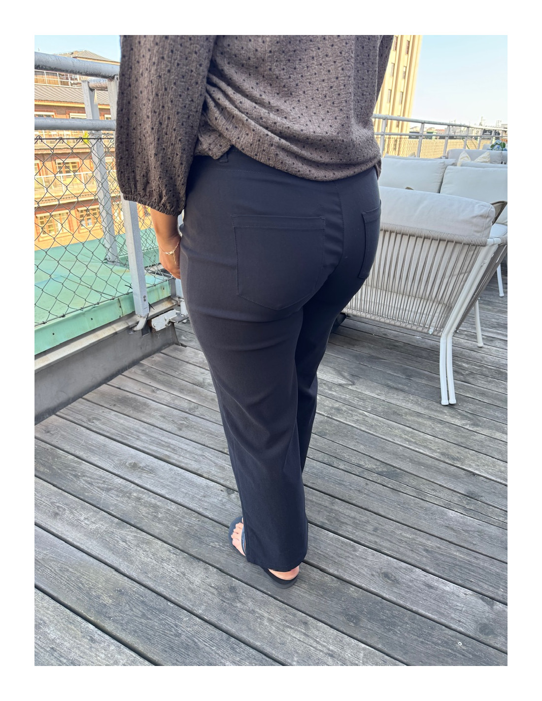 • Superstretchig, bekväm ankelbyxa med vida ben.