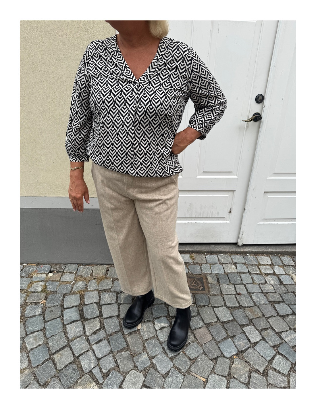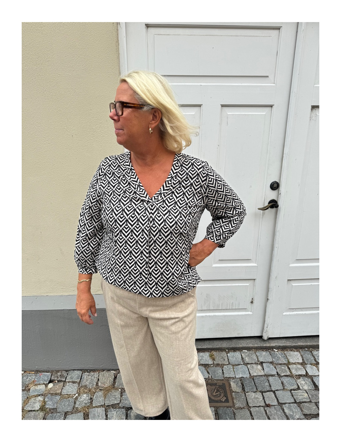 • 3/4-långa, vida ärmar med smal manschett och veck i ärmsluten.