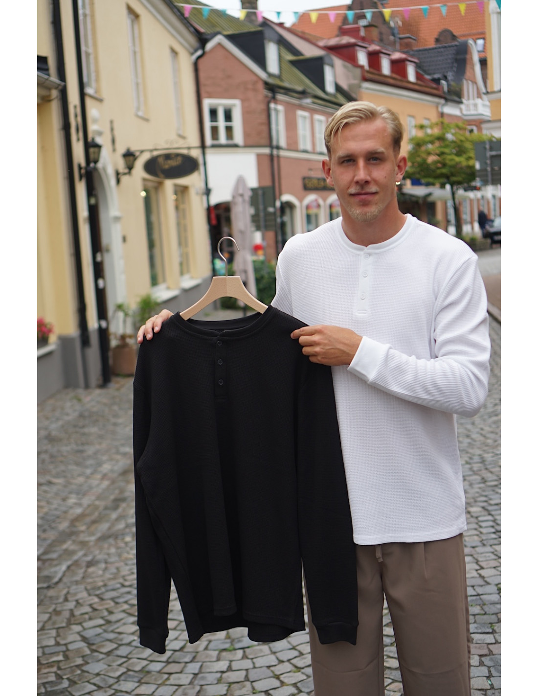 Långärmad t-shirt med knäppning i halsen.
