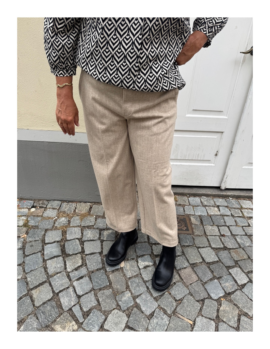 Dessa dambyxor från Street One imponerar med sin avslappnade passform och klassiska raka ben. Den höga midjan, sidofickorna och knappdetaljerna i midjebandet betonar den moderna looken. Tack vare det melerade utseendet och det bekväma materialet är dessa byxor perfekta för snygga vardagskläder.