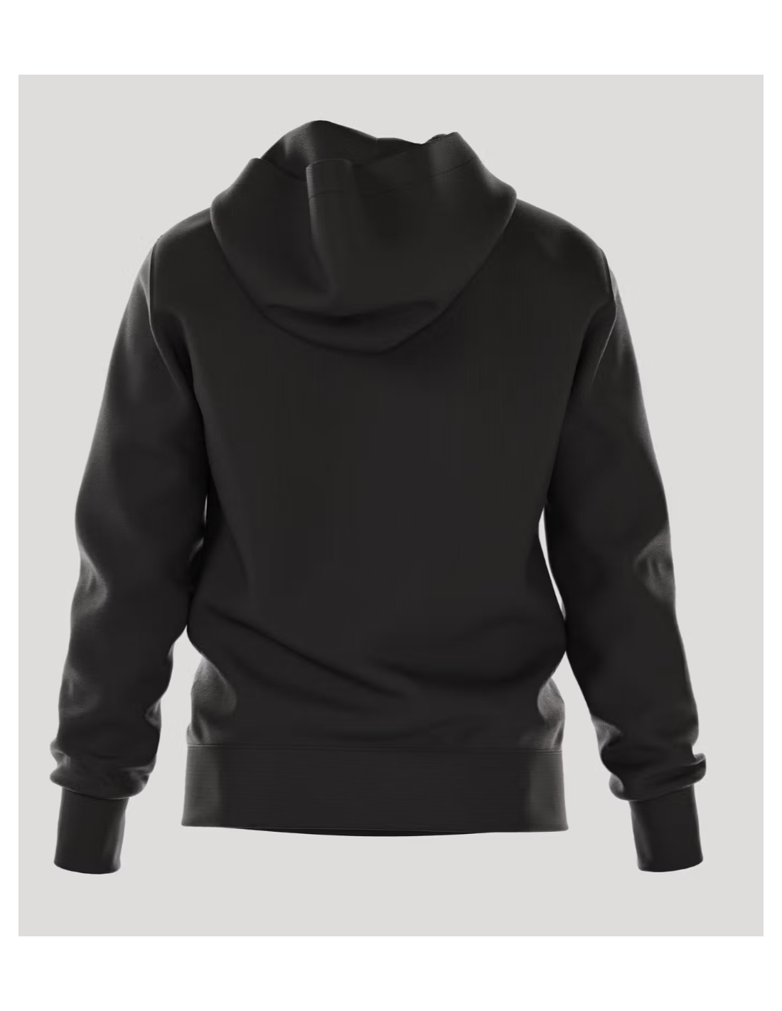 En snygg vardagshoodie för män i mjukt borstad fleece med justerbar huva, öppen ficka framtill och ett stort grafiskt logotryck på bröstet.