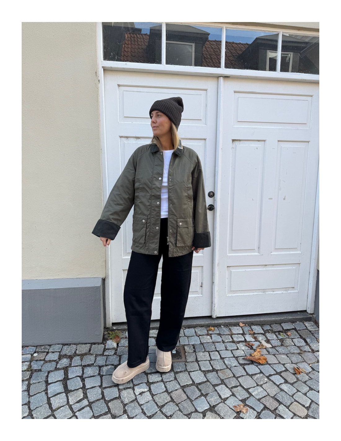 Den är ändå något rymlig så att man får plats med en stickad tröja under.