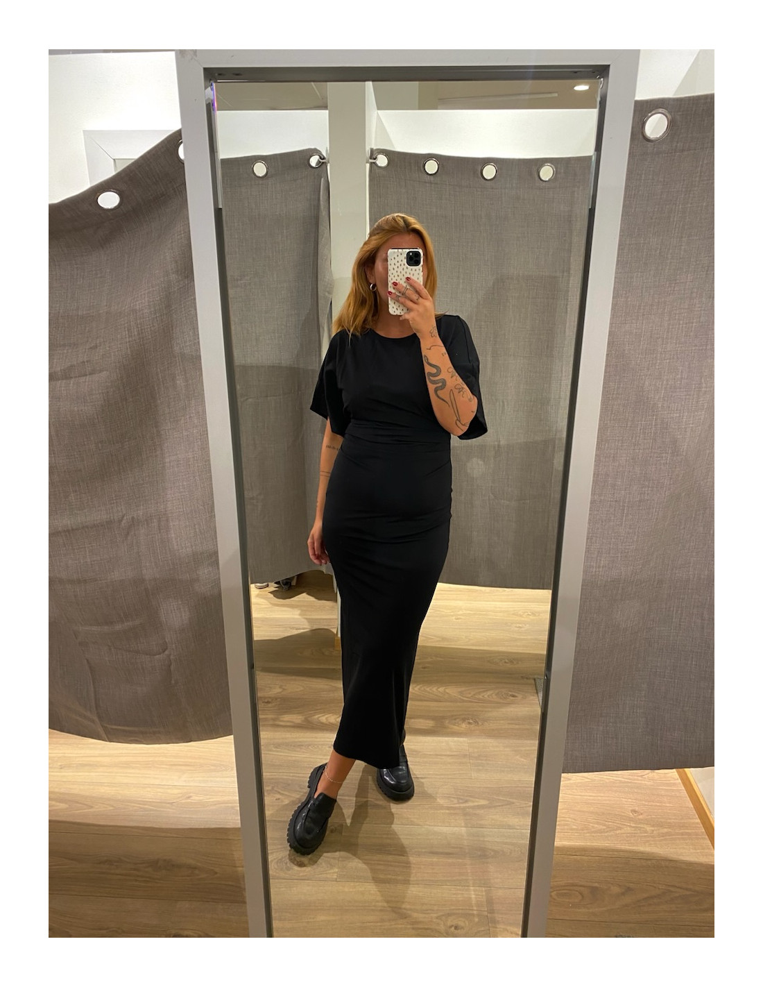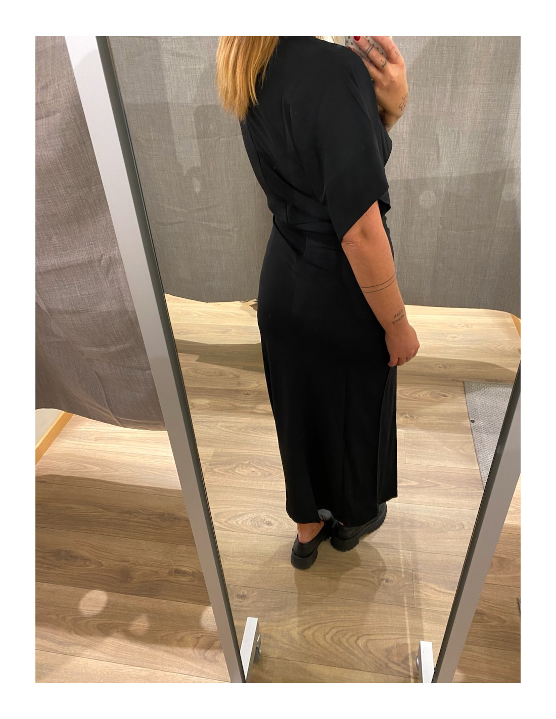 Klänning med vidare ärm och tightatare i midjan.