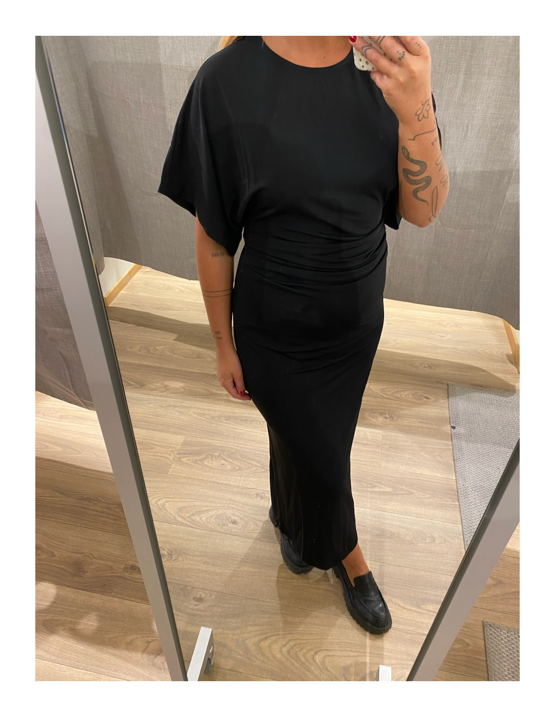 Smiter åt i midjan och drapering i sidan.