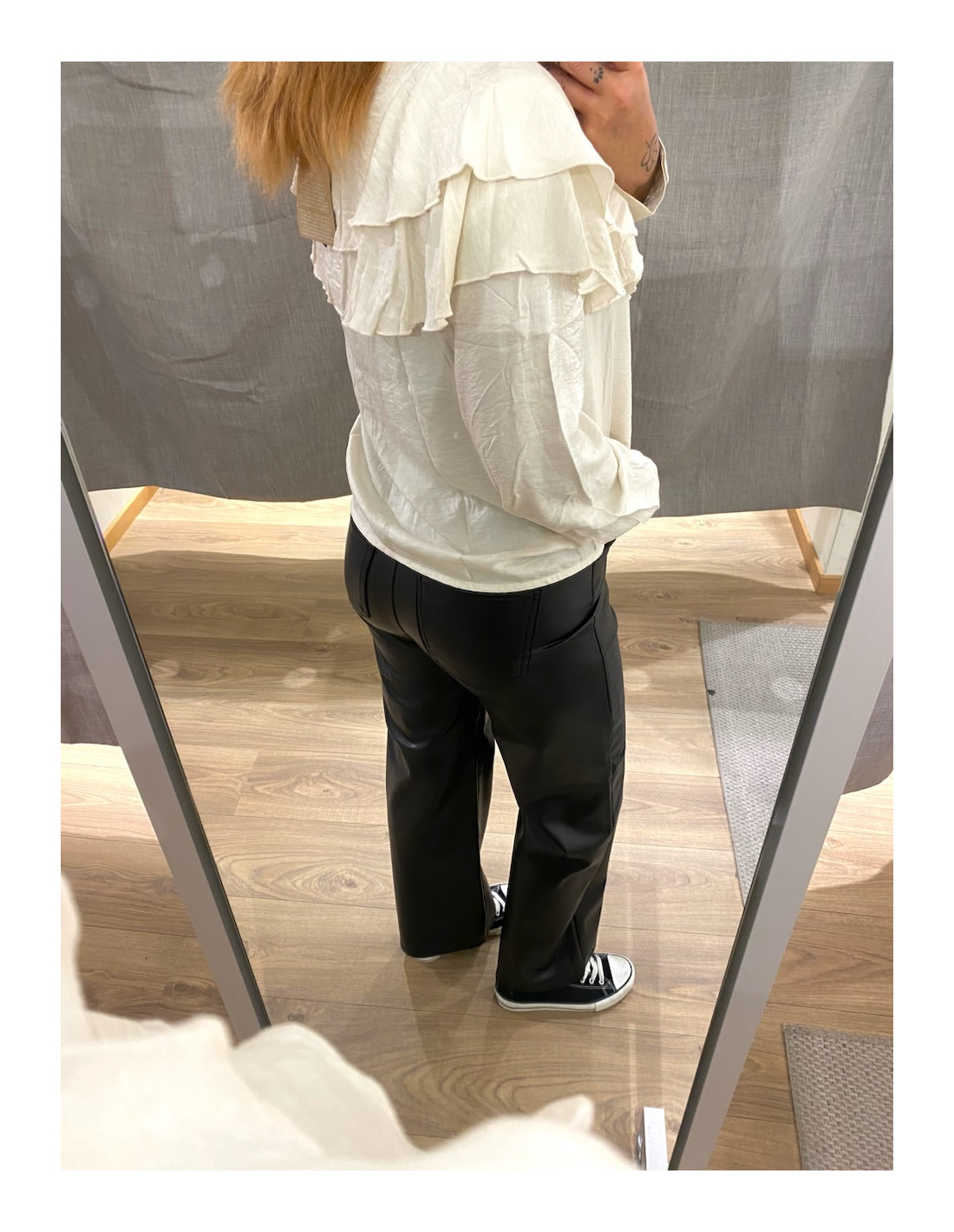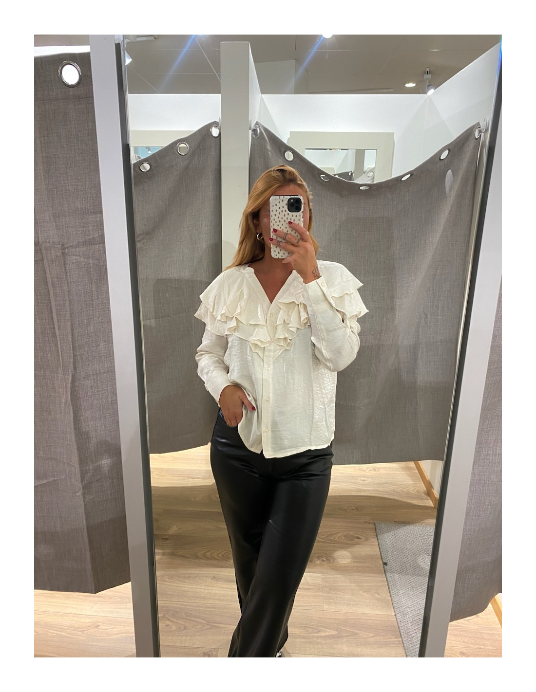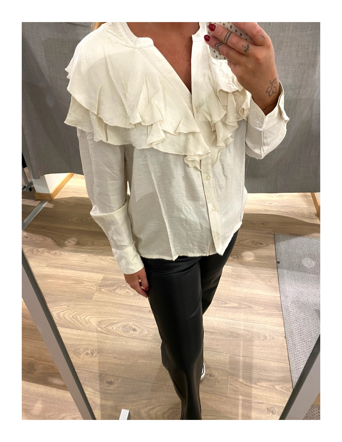 Blus med volanger både fram och bak.