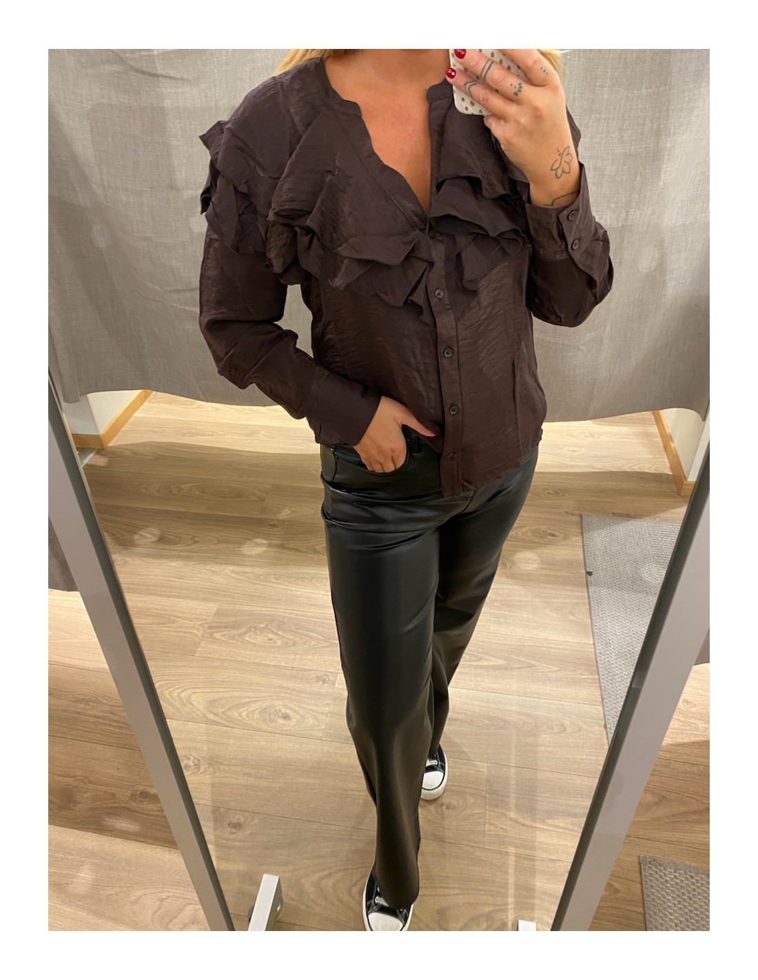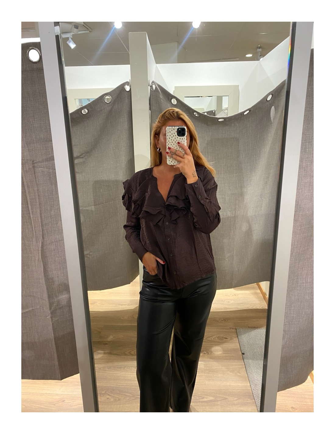 Blus med volanger både fram och bak.