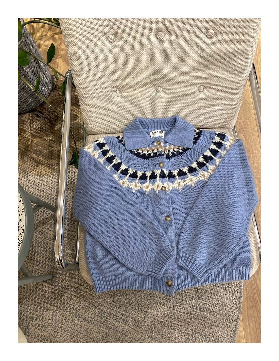 Cardigan med knappar framtill och med krage.