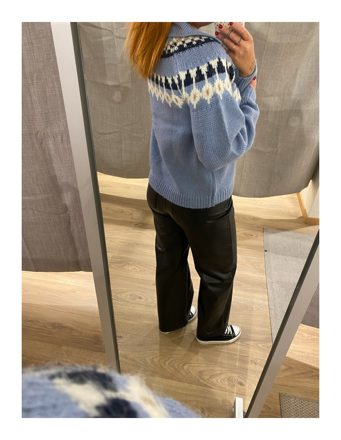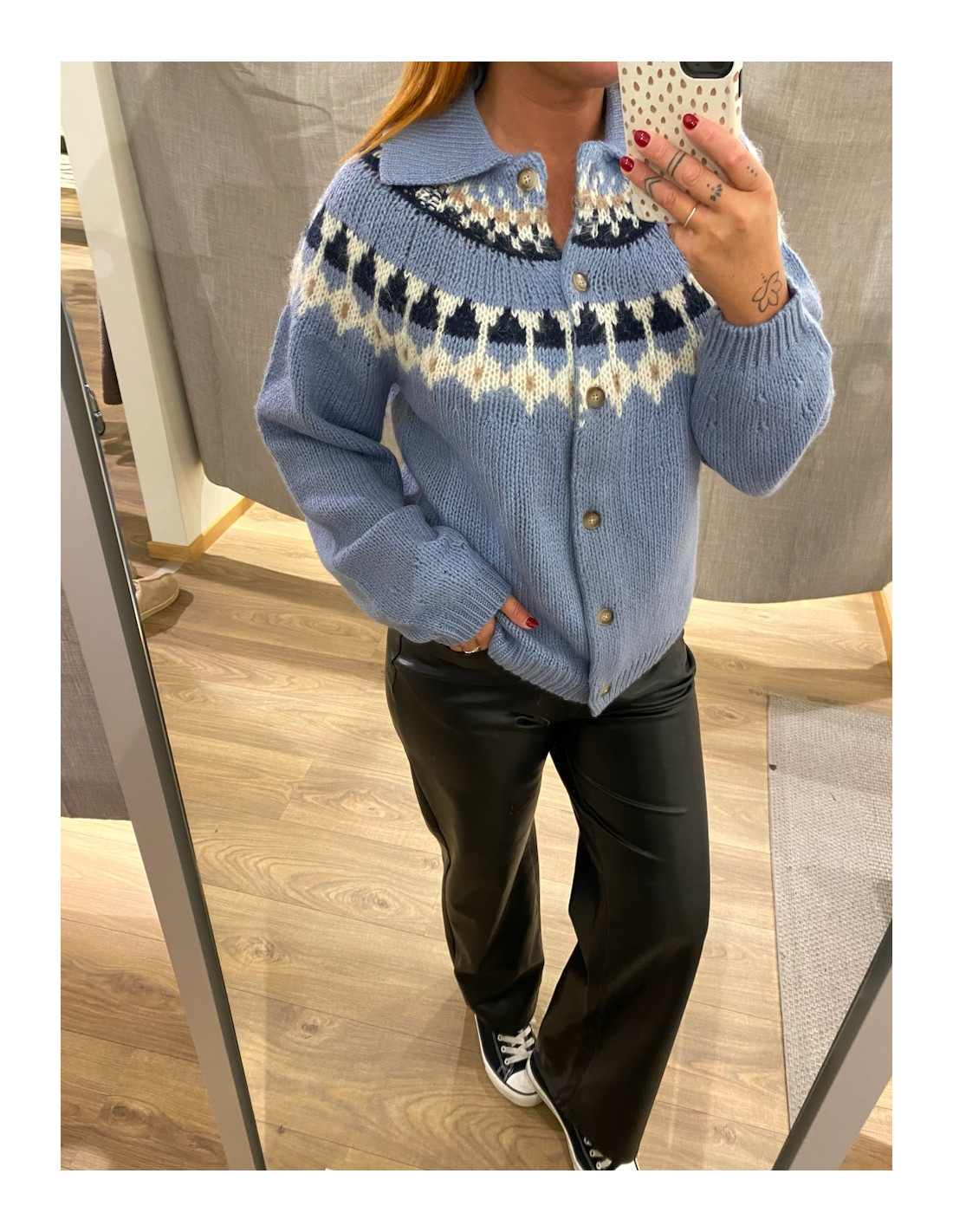 Mönster upptill och mudd nedtill på ärmslutet.