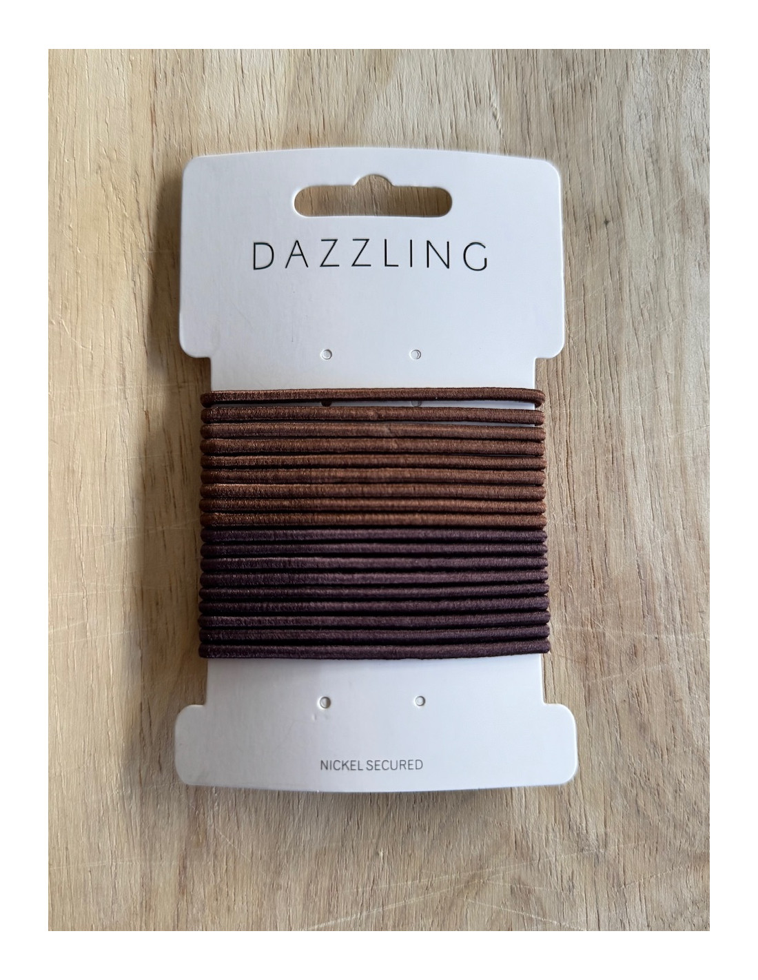 Tunna bruna hårsnoddar från Dazzling. Hårsnoddarna är utan metall och i finns i två olika färgkombinationer.