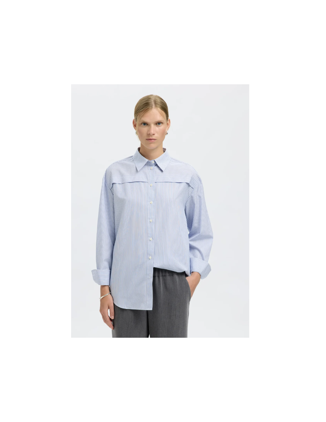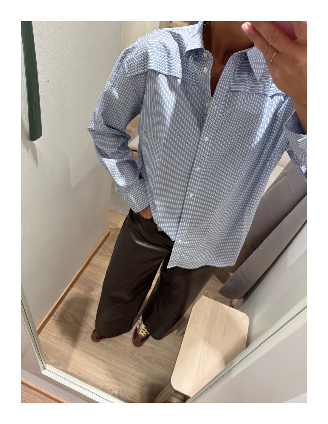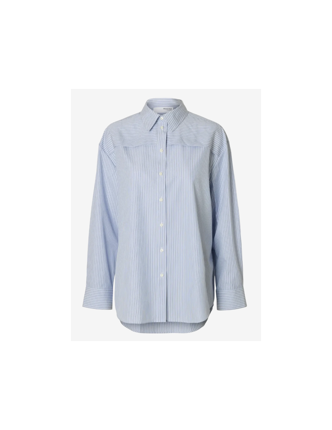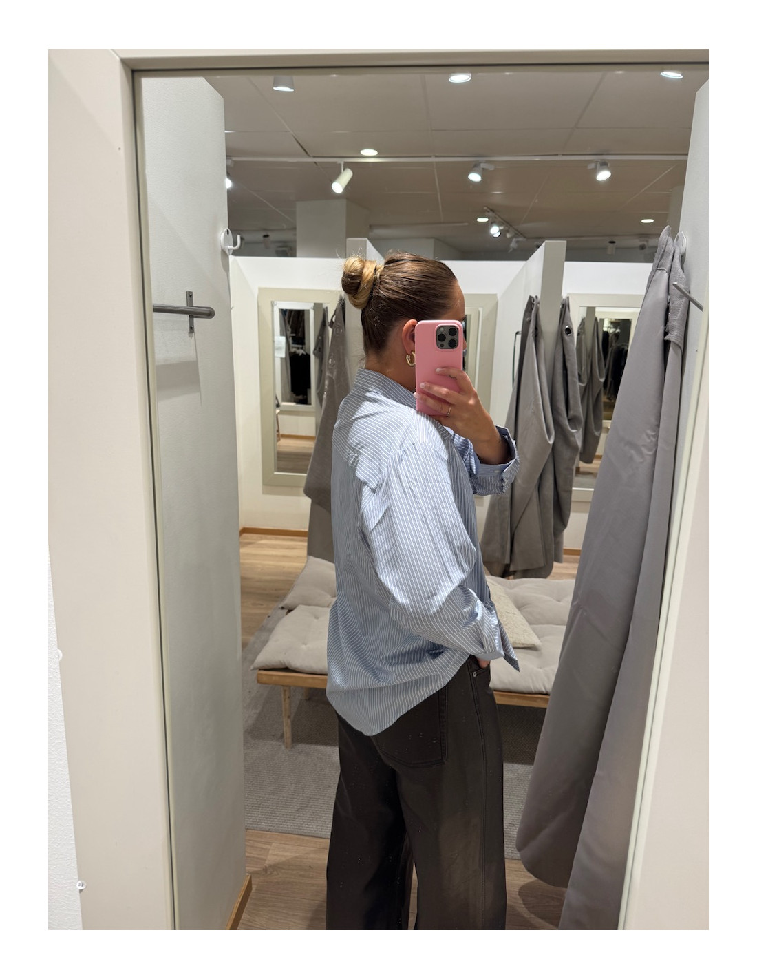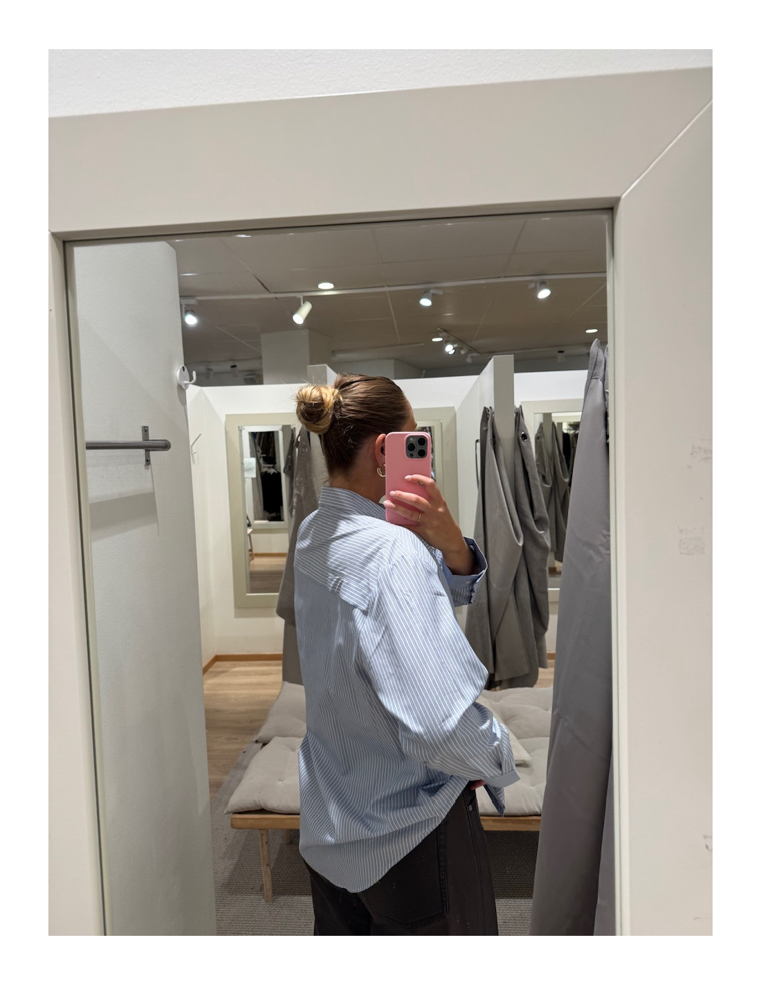 Denna långärmade skjorta är designad med en avslappnad, oversized passform och har en klassisk skjortkrage och manschetter med knappar, vilket ger en blandning av komfort och stil. Knäppningen ger en tidlös touch till detta mångsidiga plagg.