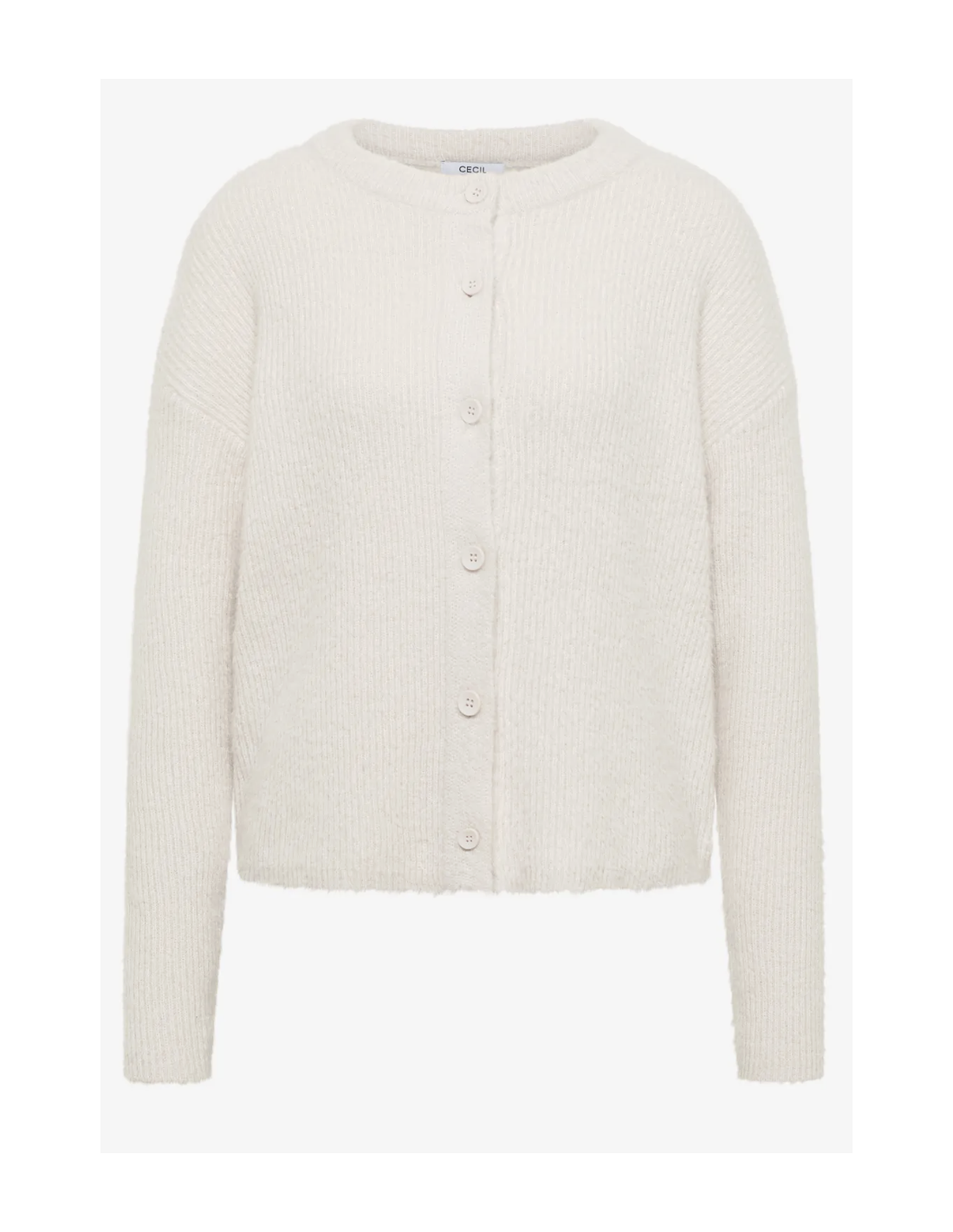 Denna ribbade kofta från CECIL för kvinnor imponerar med sitt mjuka fjädergarn och bekväma passform. Den runda halsringningen och knappslåen ger koftan en klassisk touch. Perfekt för en bekväm look med en trendig textur.